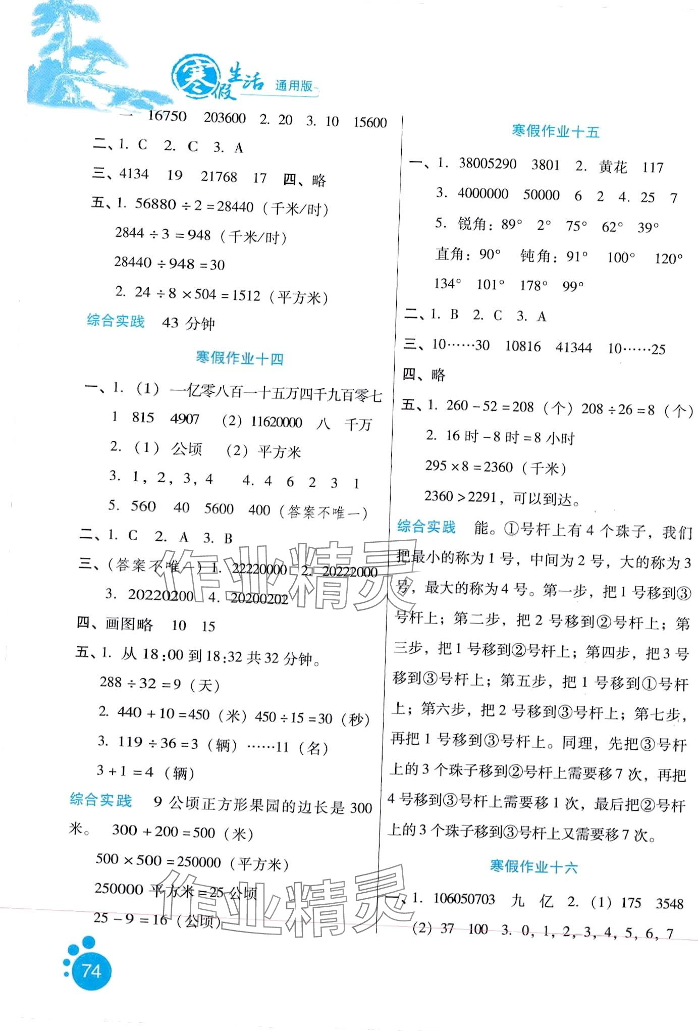 2024年寒假生活河北少年儿童出版社四年级数学通用版