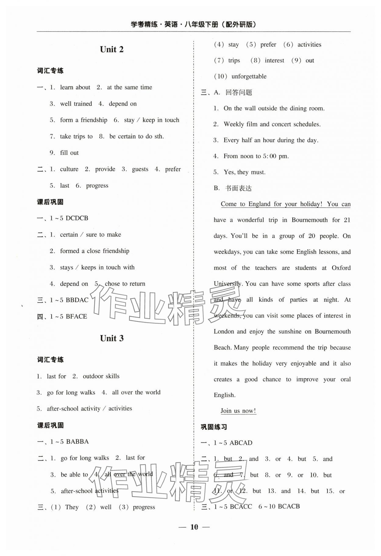 注:目前有些书本章节名称可能整理的还不是很完善,但都是按照顺序排列的,请同学们按照顺序仔细查找。练习册 2024年南粤学典学考精练八年级英语下册外研版 答案主要是用来给同学们做完题方便对答案用的,请勿直接抄袭。