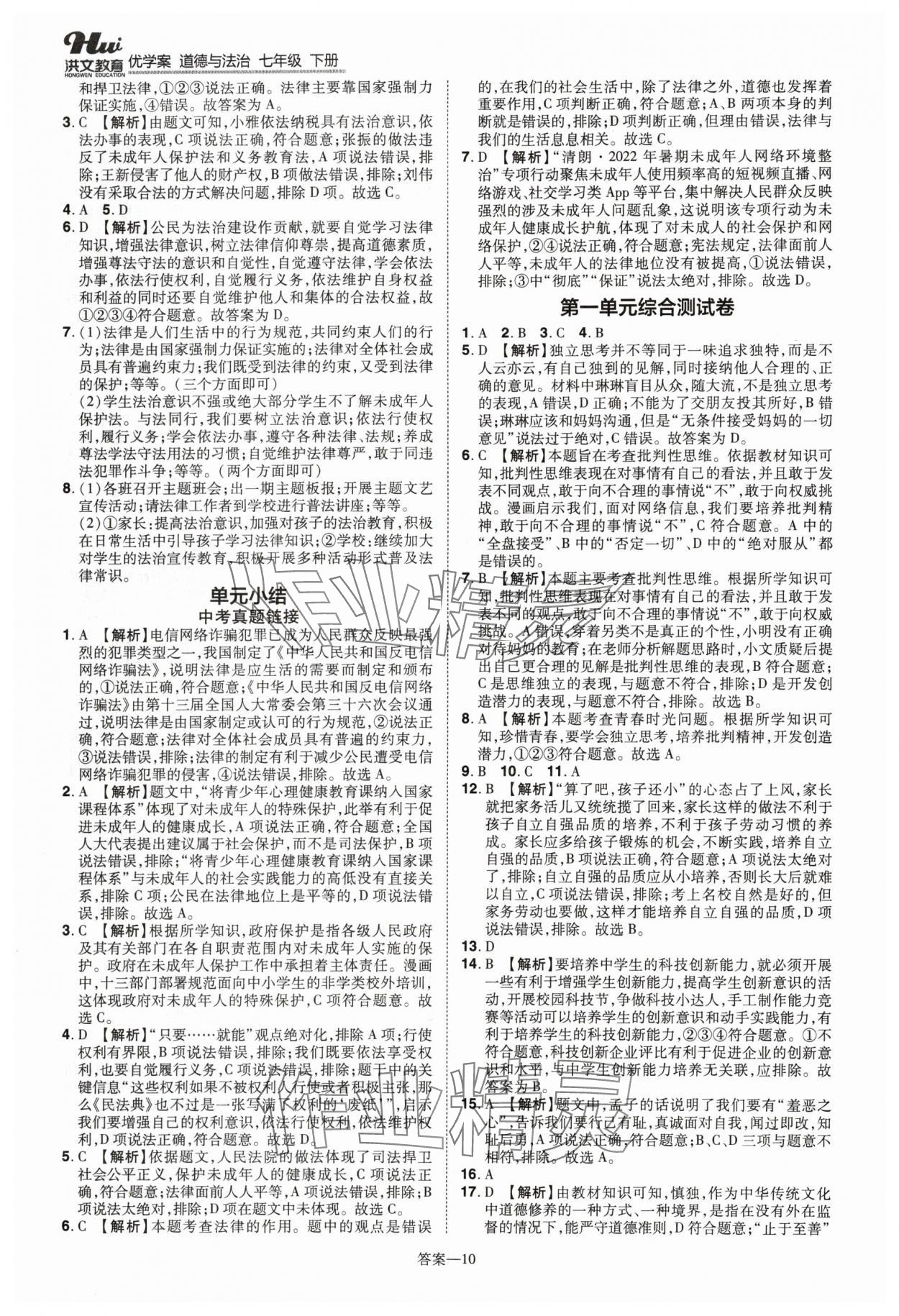 注:目前有些书本章节名称可能整理的还不是很完善,但都是按照顺序排列的,请同学们按照顺序仔细查找。练习册 2024年洪文教育优学案七年级道德与法治下册人教版 答案主要是用来给同学们做完题方便对答案用的,请勿直接抄袭。