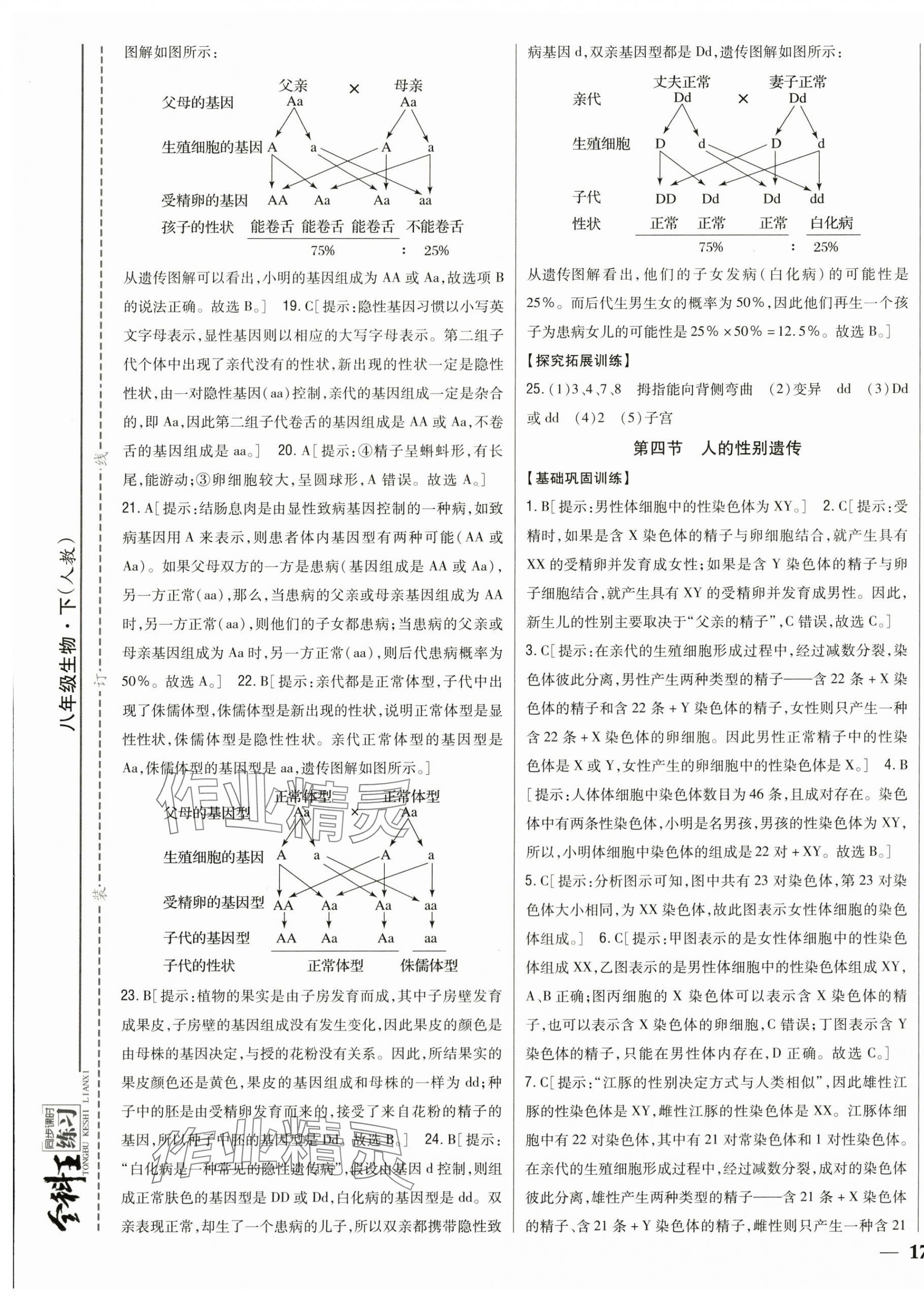 注:目前有些书本章节名称可能整理的还不是很完善,但都是按照顺序排列的,请同学们按照顺序仔细查找。练习册 2024年全科王同步课时练习八年级生物下册人教版 答案主要是用来给同学们做完题方便对答案用的,请勿直接抄袭。