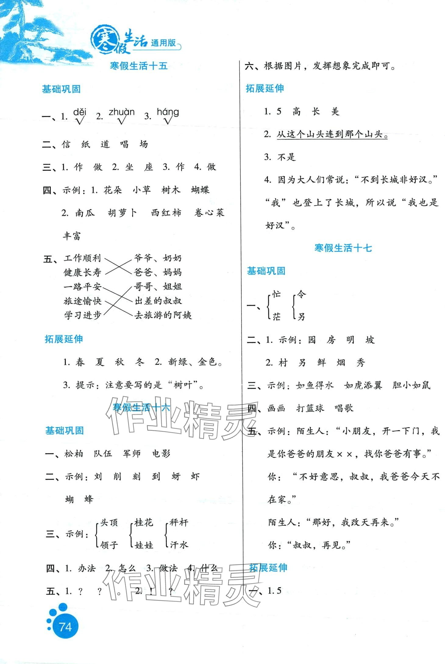 注:目前有些书本章节名称可能整理的还不是很完善,但都是按照顺序排列的,请同学们按照顺序仔细查找。练习册 2024年寒假生活河北少年儿童出版社二年级语文 答案主要是用来给同学们做完题方便对答案用的,请勿直接抄袭。