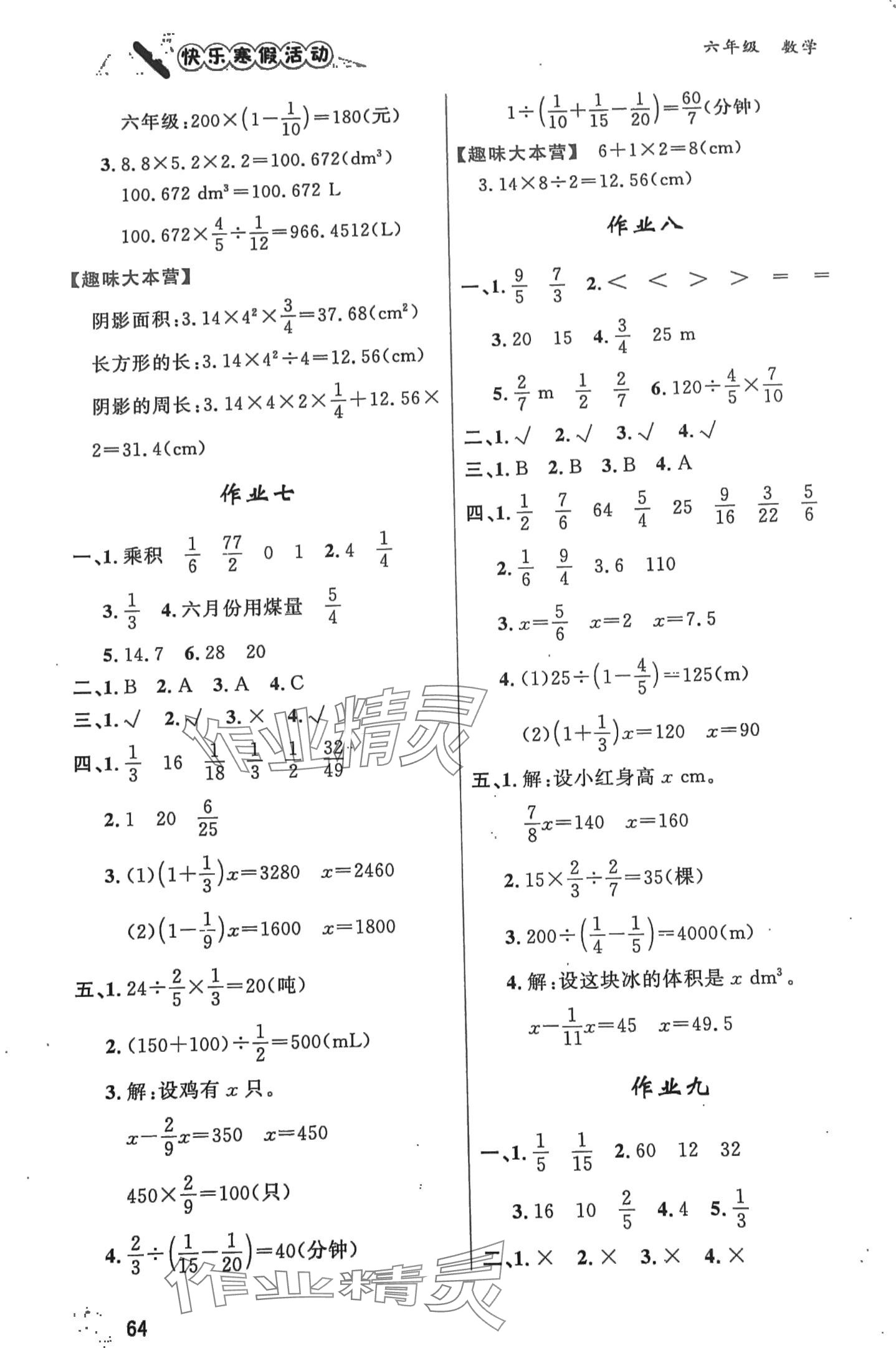 2024年快乐寒假活动六年级数学