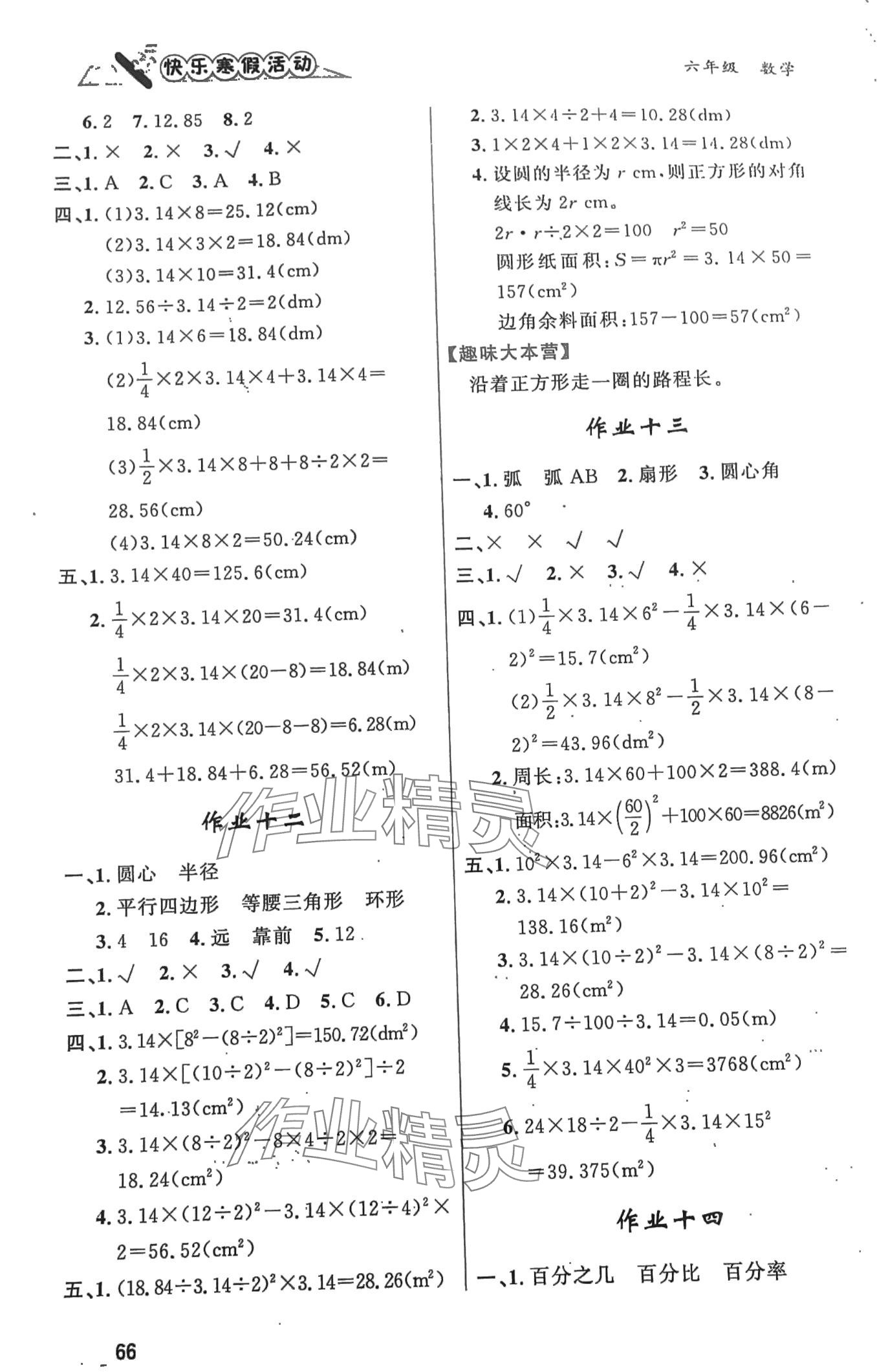 2024年快乐寒假活动六年级数学