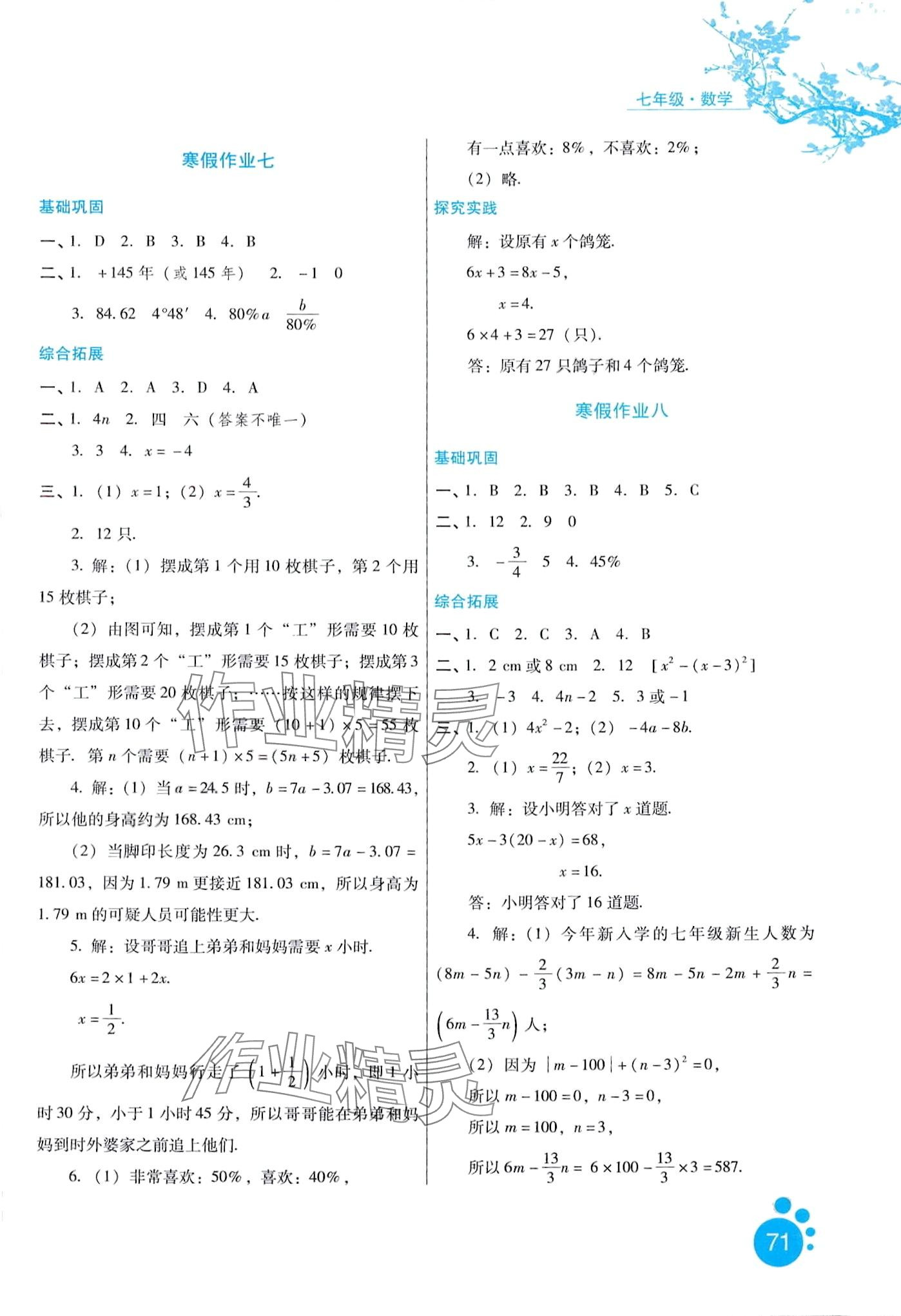 2024年寒假生活河北少年儿童出版社七年级数学北师大版