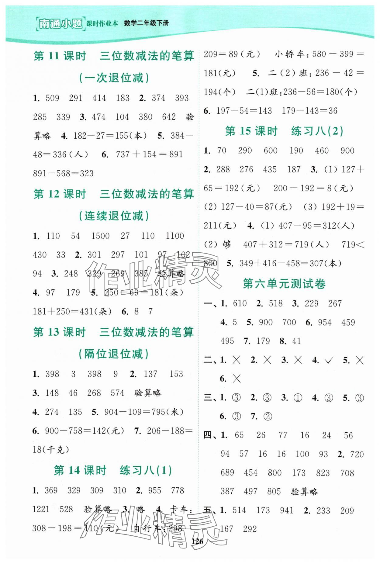 注:目前有些书本章节名称可能整理的还不是很完善,但都是按照顺序排列的,请同学们按照顺序仔细查找。练习册 2024年南通小题课时作业本二年级数学下册苏教版 答案主要是用来给同学们做完题方便对答案用的,请勿直接抄袭。