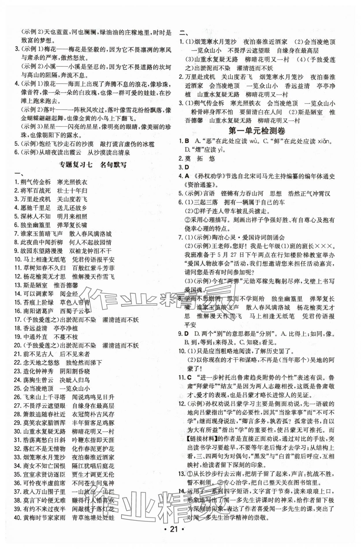 注:目前有些书本章节名称可能整理的还不是很完善,但都是按照顺序排列的,请同学们按照顺序仔细查找。练习册 2024年一本七年级语文下册人教版重庆专版 答案主要是用来给同学们做完题方便对答案用的,请勿直接抄袭。