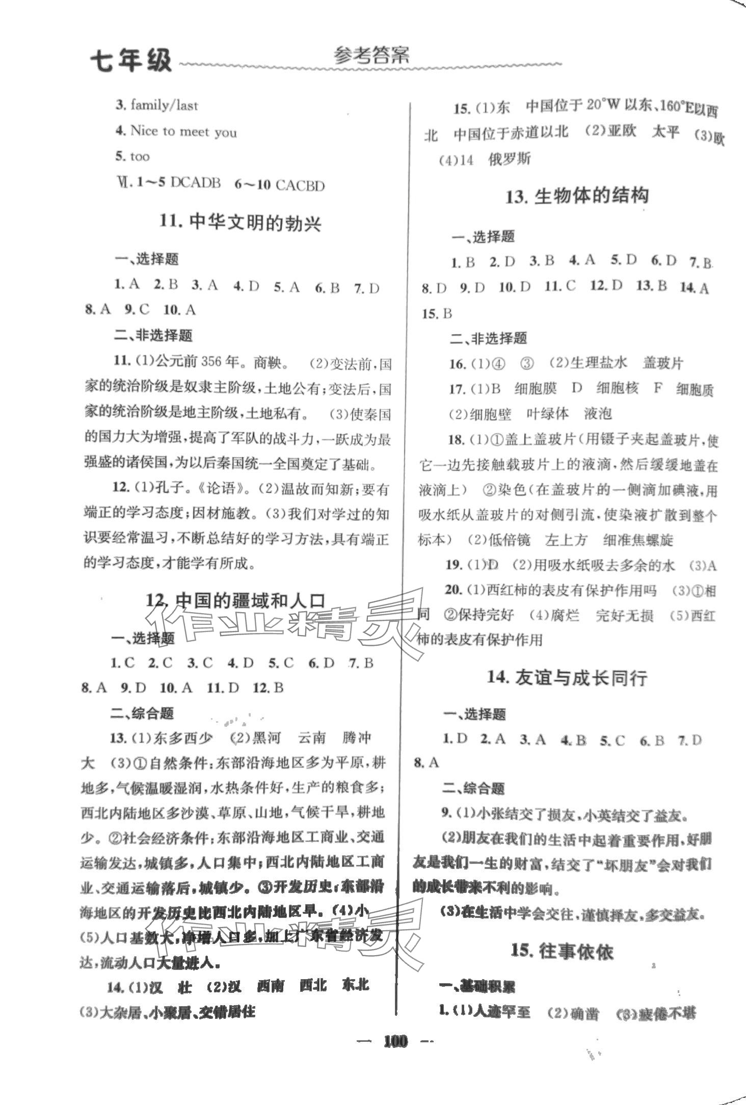 注:目前有些书本章节名称可能整理的还不是很完善,但都是按照顺序排列的,请同学们按照顺序仔细查找。练习册 2024年寒假生活北京师范大学出版社七年级合订本 答案主要是用来给同学们做完题方便对答案用的,请勿直接抄袭。