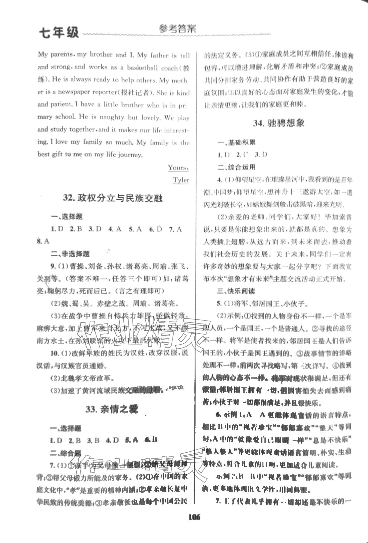 注:目前有些书本章节名称可能整理的还不是很完善,但都是按照顺序排列的,请同学们按照顺序仔细查找。练习册 2024年寒假生活北京师范大学出版社七年级合订本 答案主要是用来给同学们做完题方便对答案用的,请勿直接抄袭。