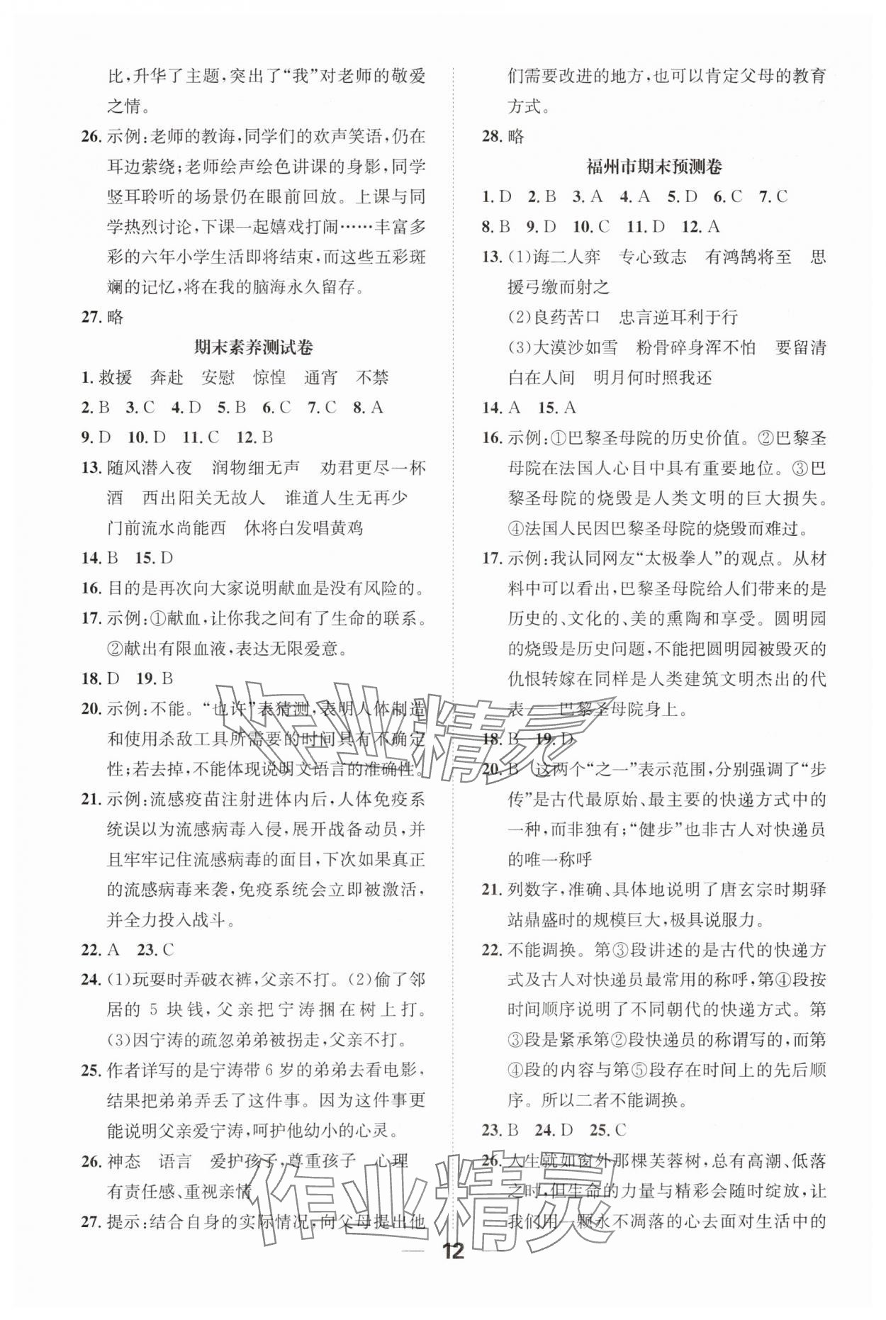 2024年小学1课3练培优作业本六年级语文下册人教版福建专版