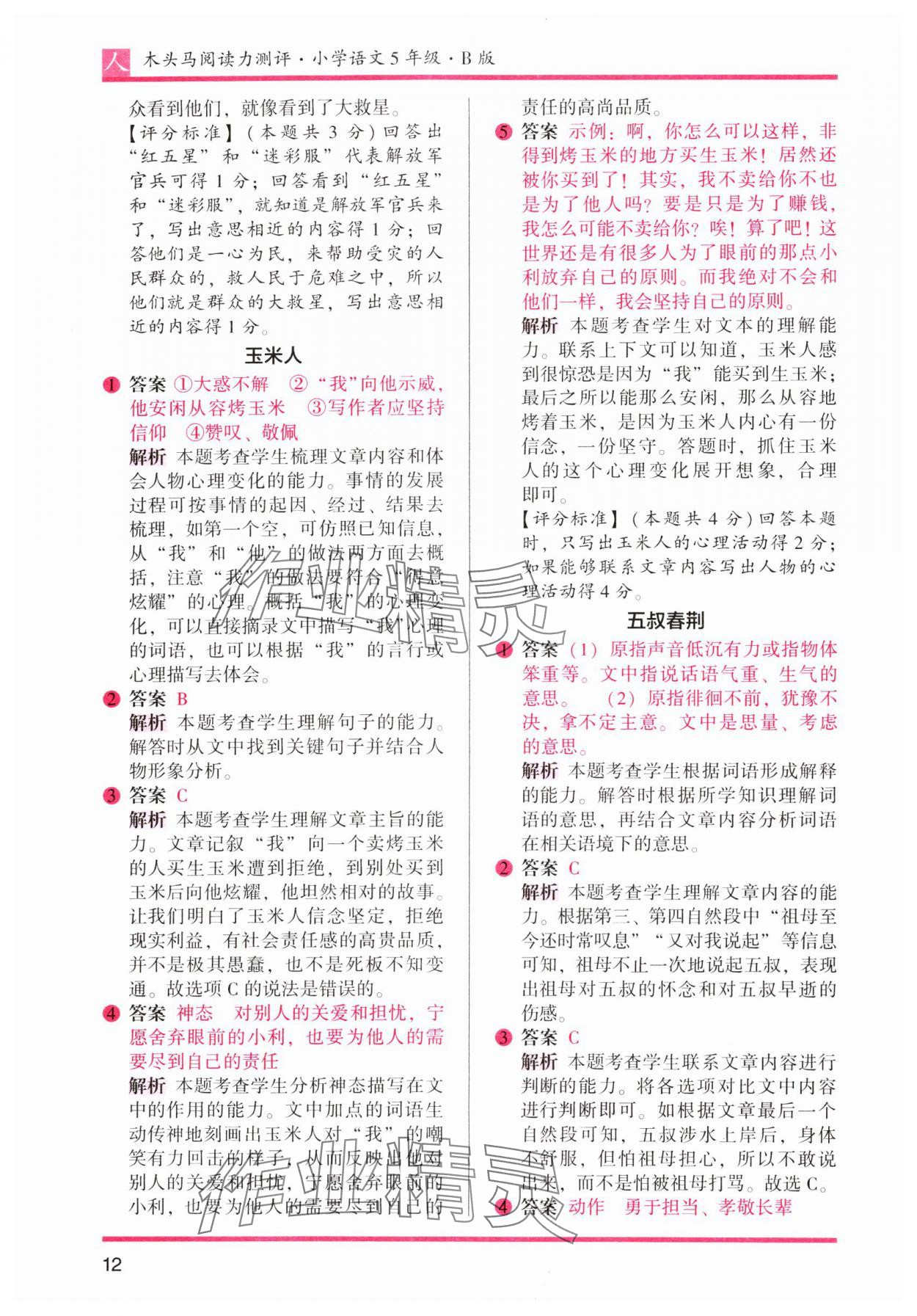 2024年木头马阅读力测评五年级语文下册人教版