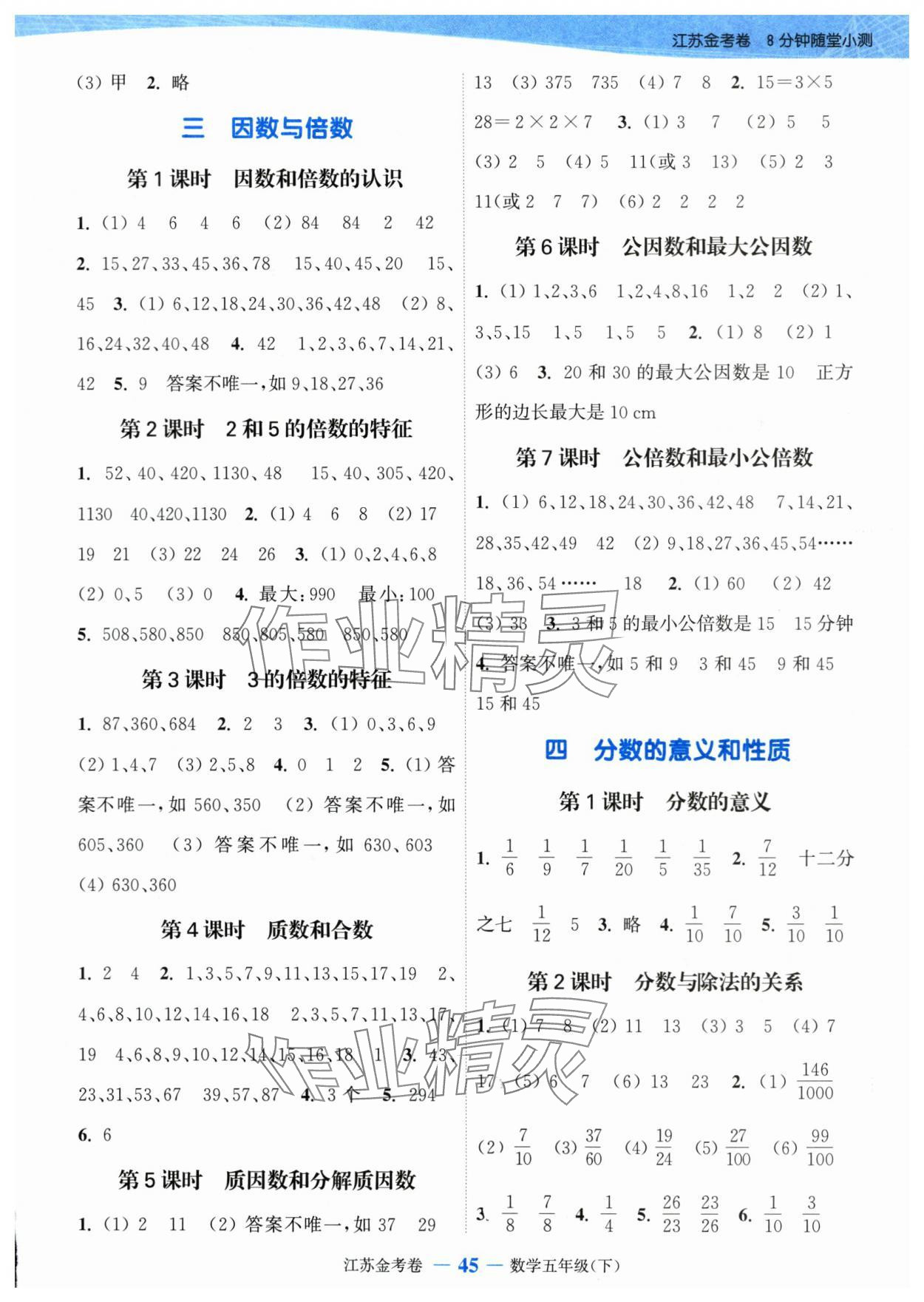 注:目前有些书本章节名称可能整理的还不是很完善,但都是按照顺序排列的,请同学们按照顺序仔细查找。练习册 2024年江苏金考卷五年级数学下册苏教版 答案主要是用来给同学们做完题方便对答案用的,请勿直接抄袭。