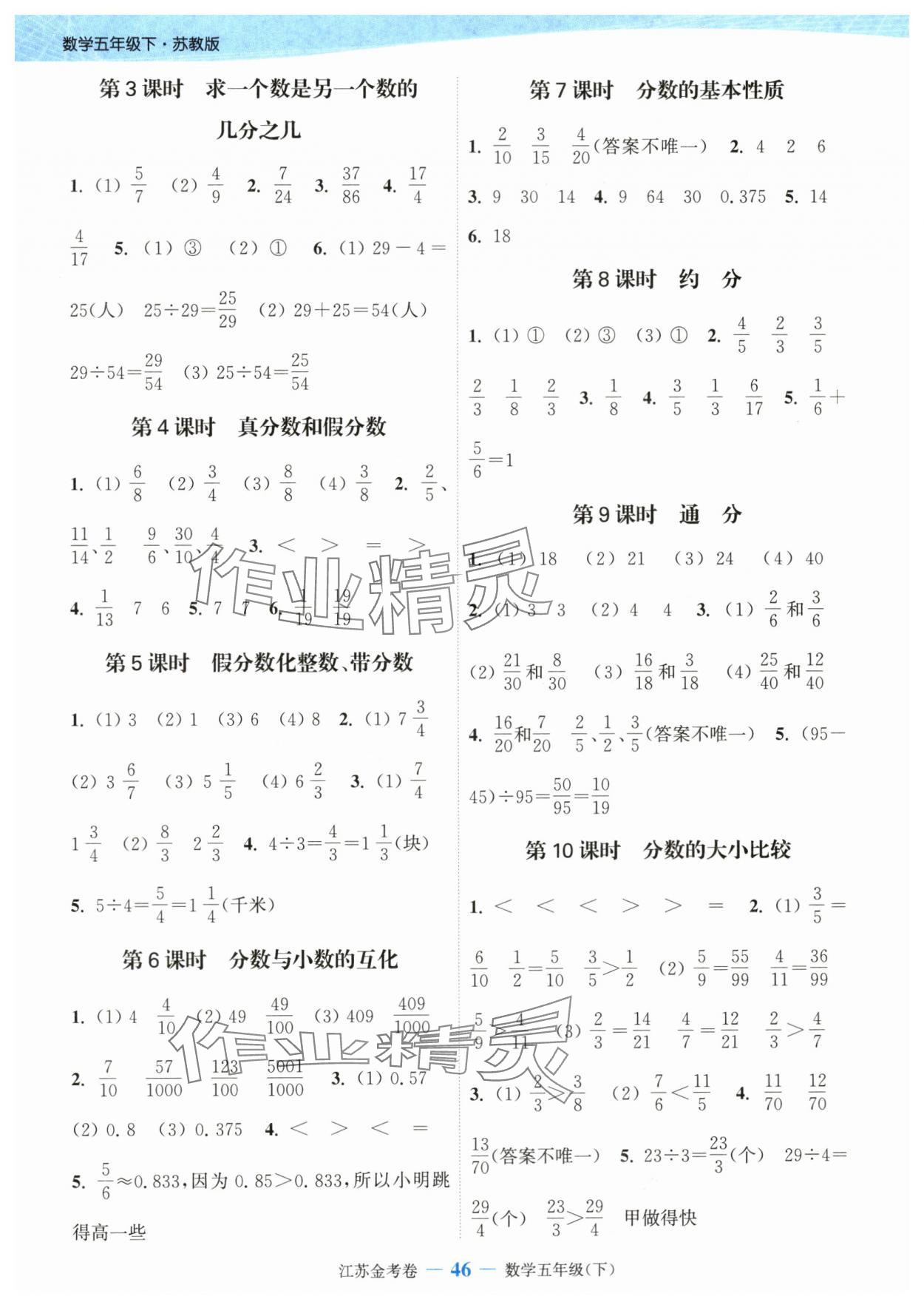 注:目前有些书本章节名称可能整理的还不是很完善,但都是按照顺序排列的,请同学们按照顺序仔细查找。练习册 2024年江苏金考卷五年级数学下册苏教版 答案主要是用来给同学们做完题方便对答案用的,请勿直接抄袭。
