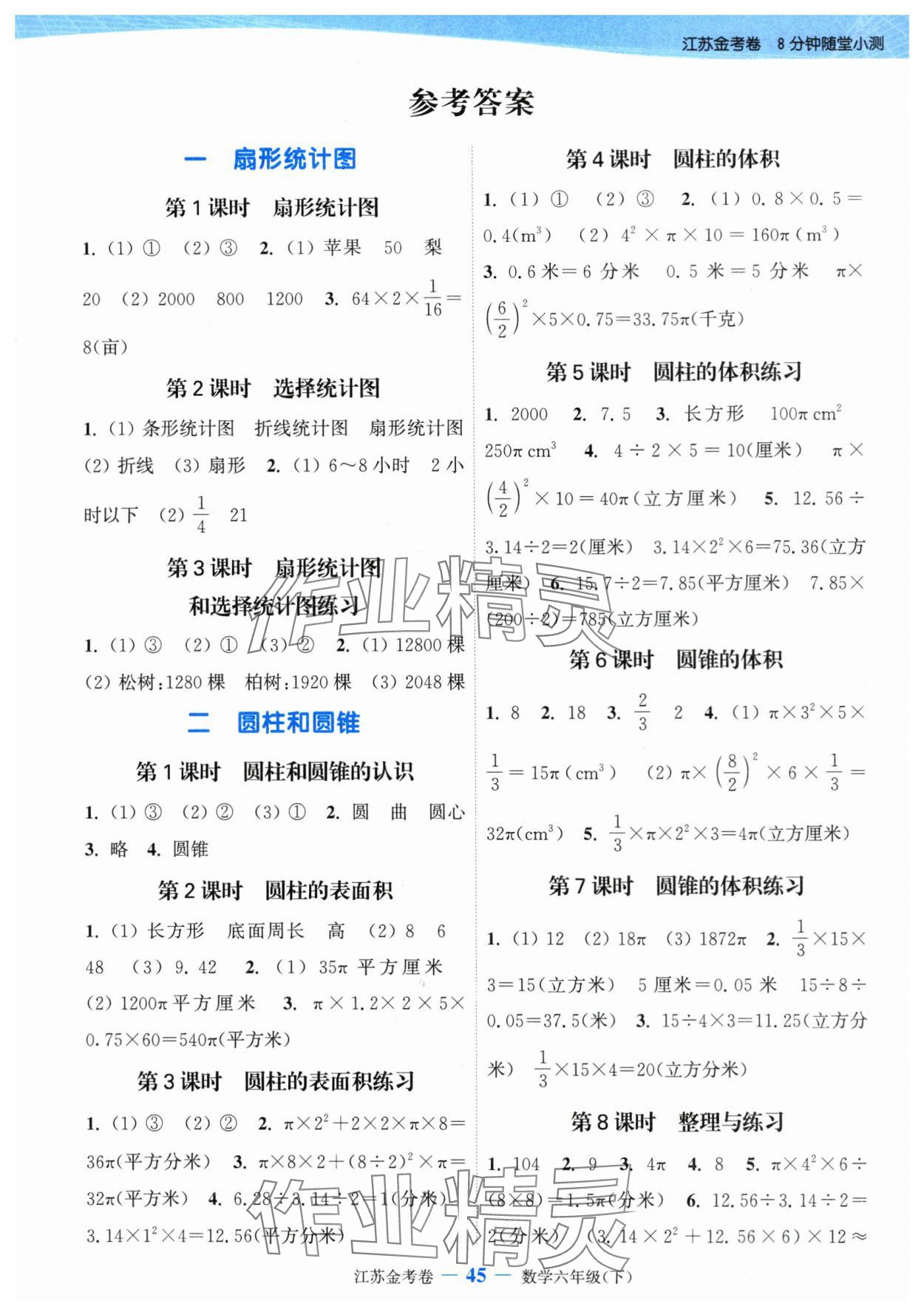 注:目前有些书本章节名称可能整理的还不是很完善,但都是按照顺序排列的,请同学们按照顺序仔细查找。练习册 2024年江苏金考卷六年级数学下册苏教版 答案主要是用来给同学们做完题方便对答案用的,请勿直接抄袭。