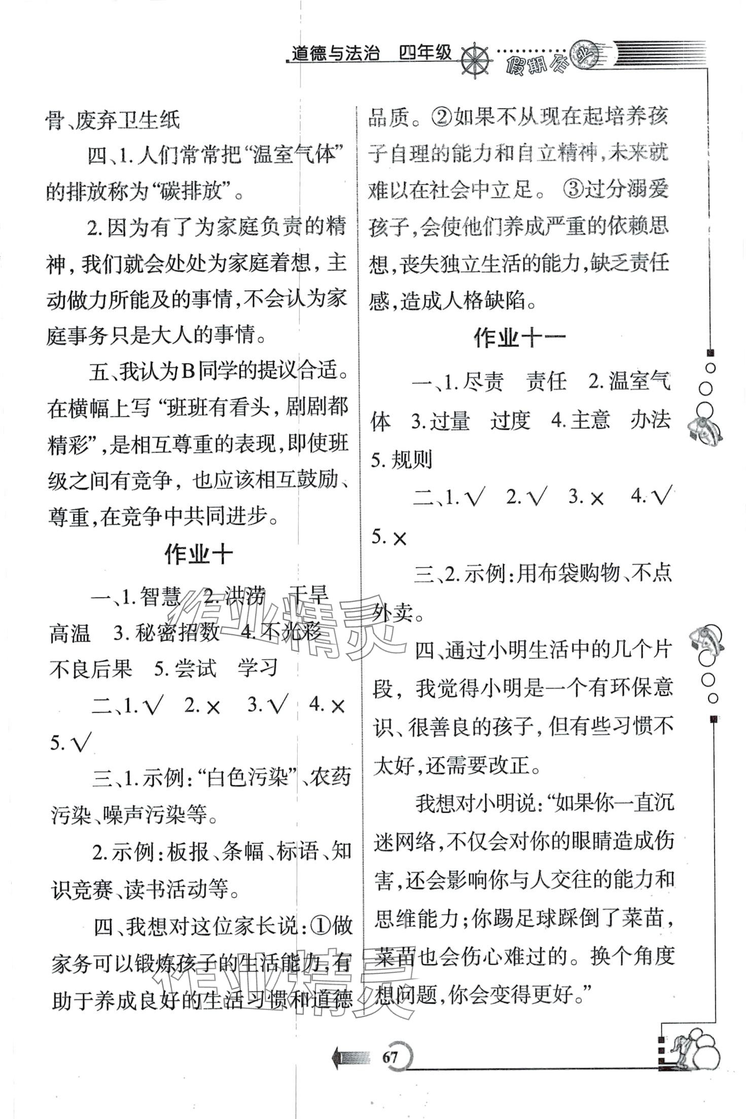 《2024年假期作业西安出版社四年级道德与法治人教版》