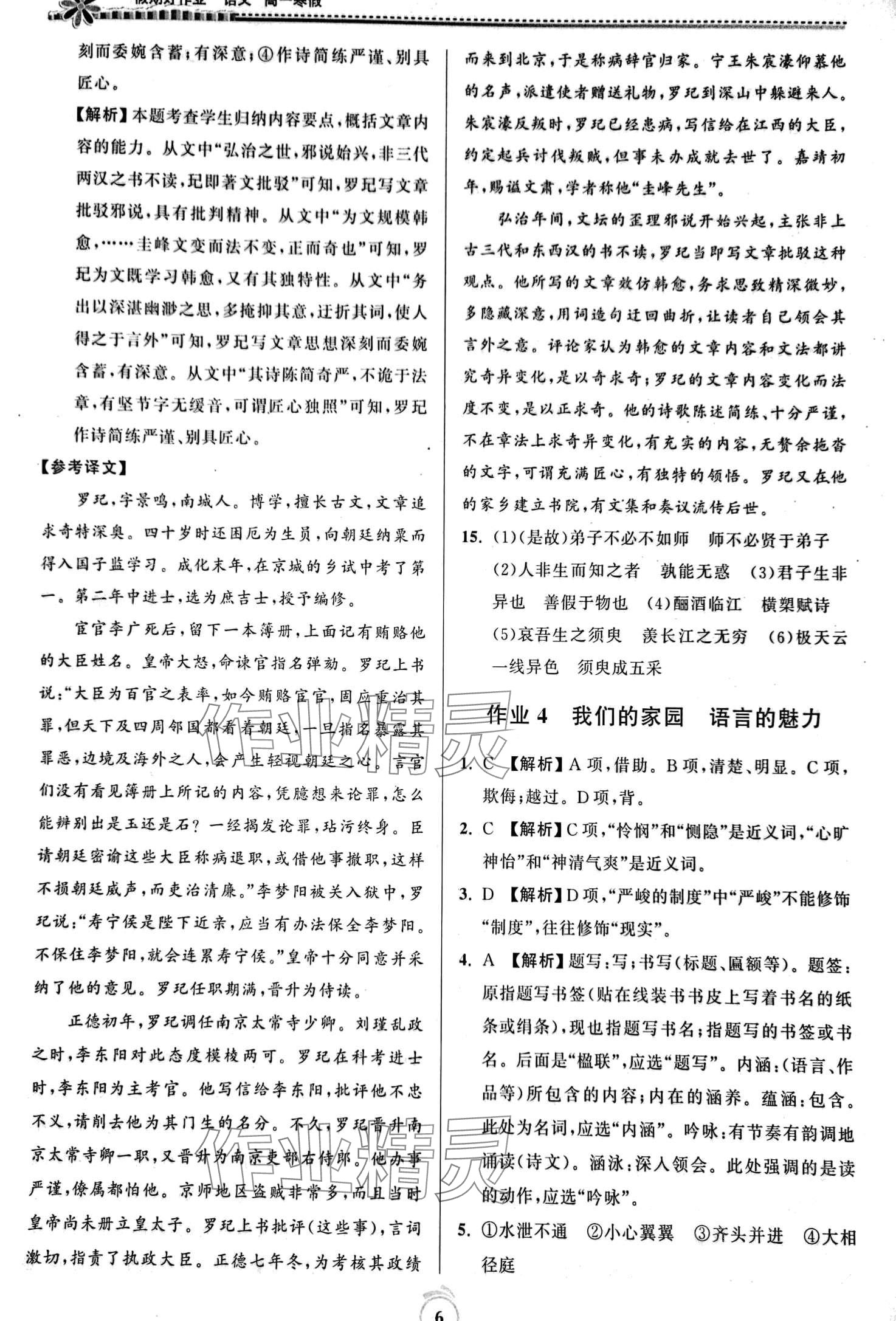 注:目前有些书本章节名称可能整理的还不是很完善,但都是按照顺序排列的,请同学们按照顺序仔细查找。练习册 2024年假期好作业高一语文 答案主要是用来给同学们做完题方便对答案用的,请勿直接抄袭。