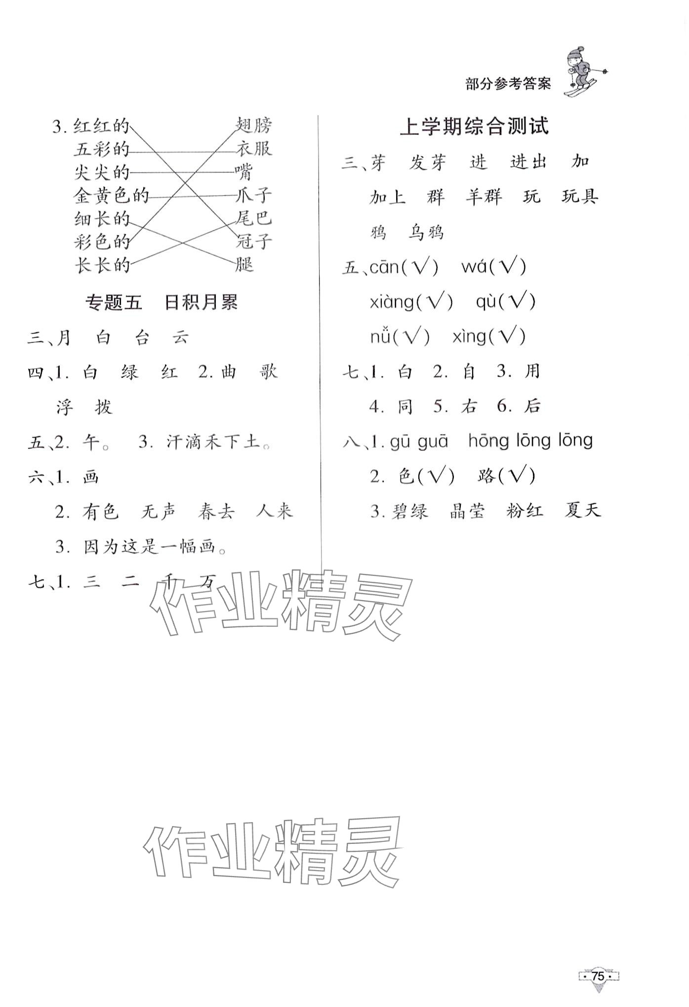 注:目前有些书本章节名称可能整理的还不是很完善,但都是按照顺序排列的,请同学们按照顺序仔细查找。练习册 2024年寒假作业知识出版社一年级语文 答案主要是用来给同学们做完题方便对答案用的,请勿直接抄袭。