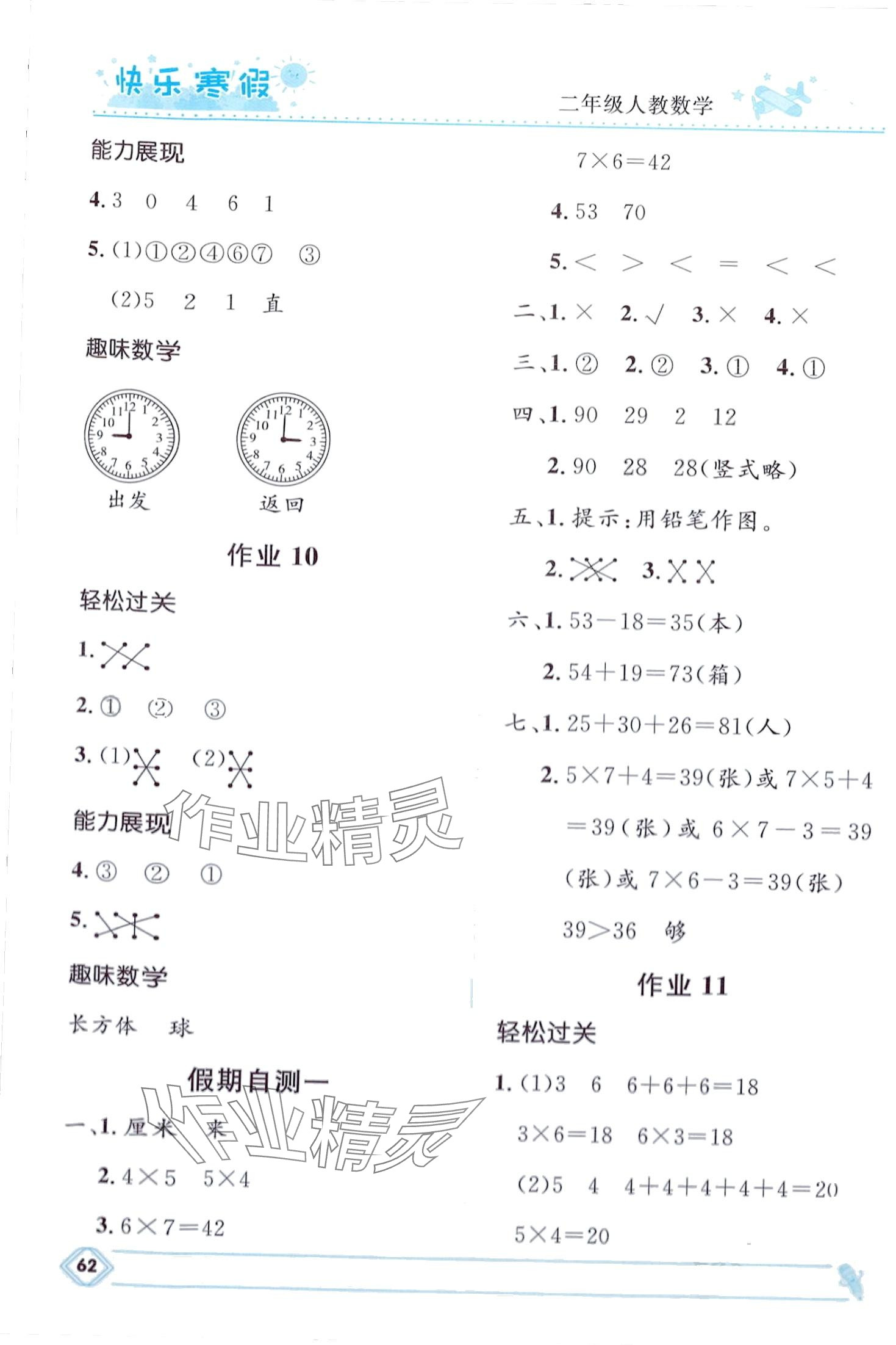 《2024年赢在起跑线快乐寒假河北少年儿童出版社二年级数学人教版》