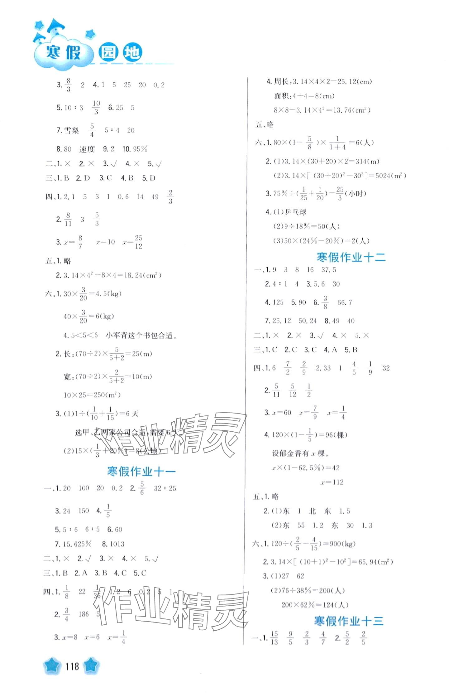 2024年寒假园地河北美术出版社六年级数学沪粤版
