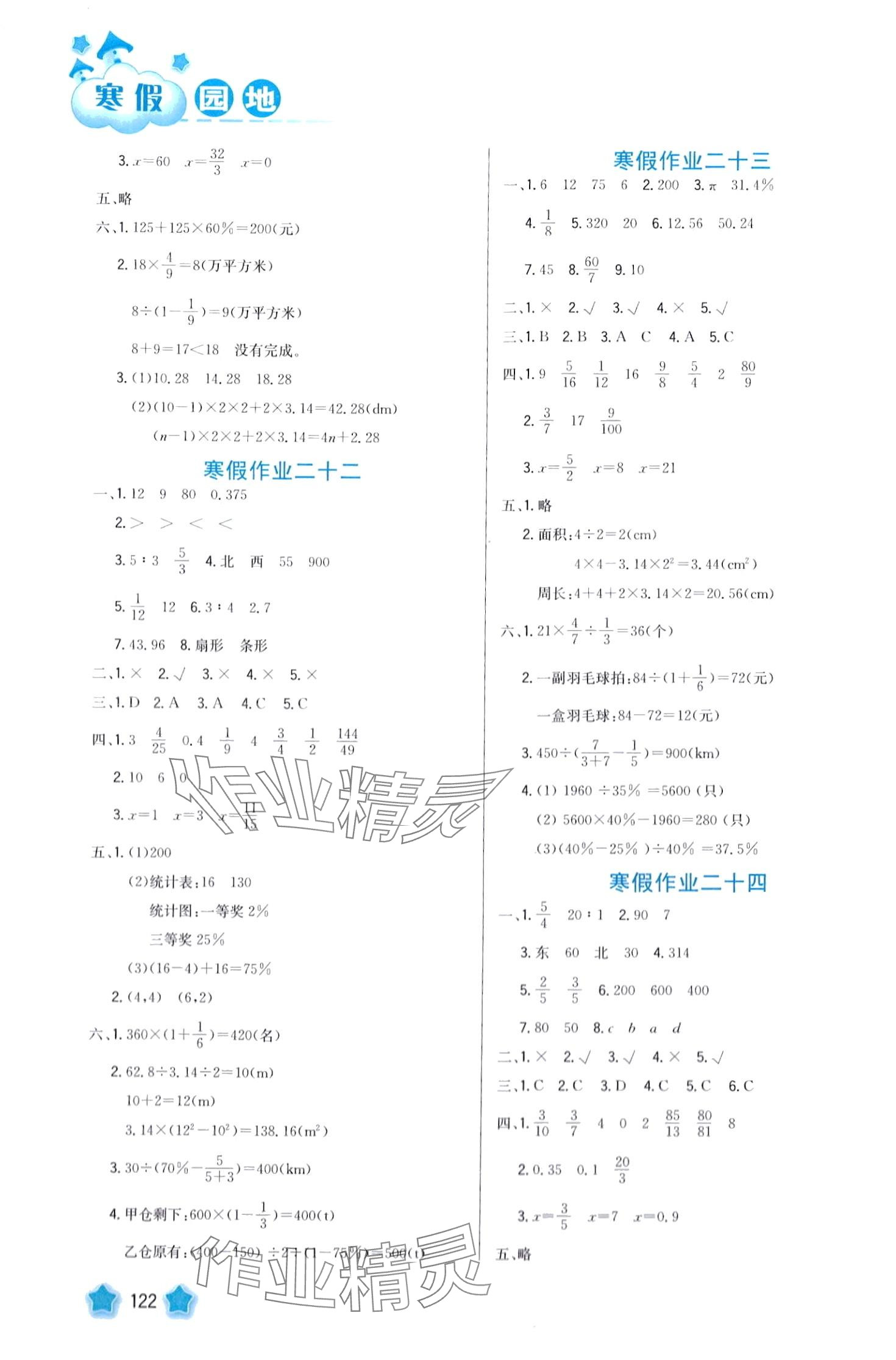 2024年寒假园地河北美术出版社六年级数学沪粤版
