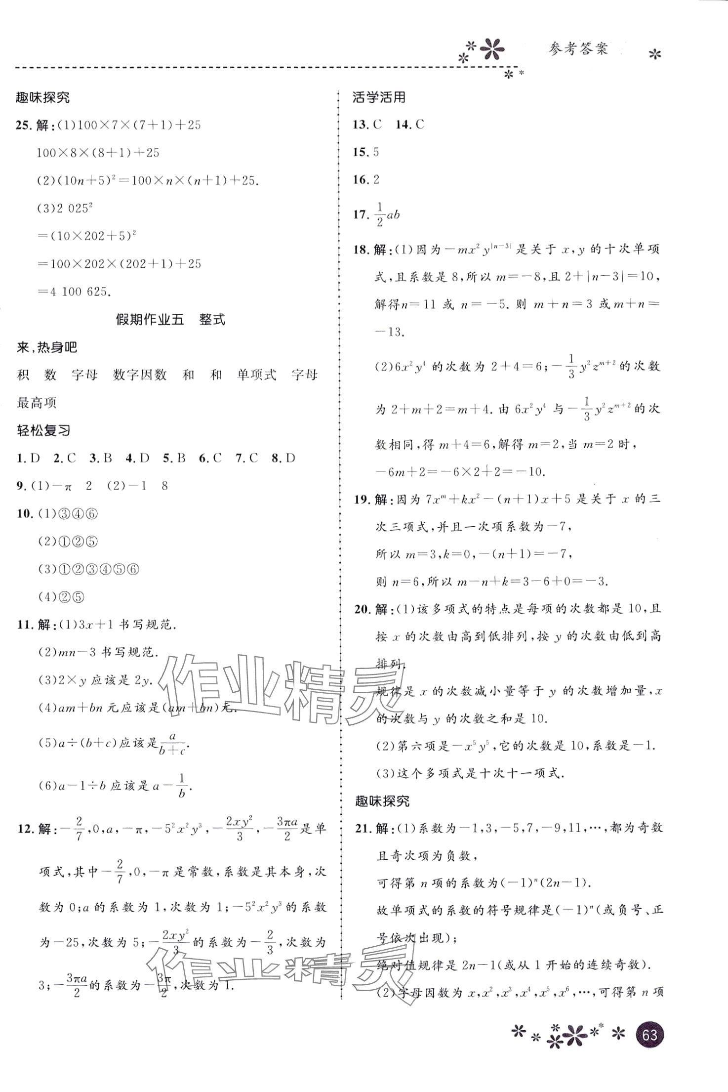 注:目前有些书本章节名称可能整理的还不是很完善,但都是按照顺序排列的,请同学们按照顺序仔细查找。练习册 2024年缤纷假期河北教育出版社七年级数学 答案主要是用来给同学们做完题方便对答案用的,请勿直接抄袭。