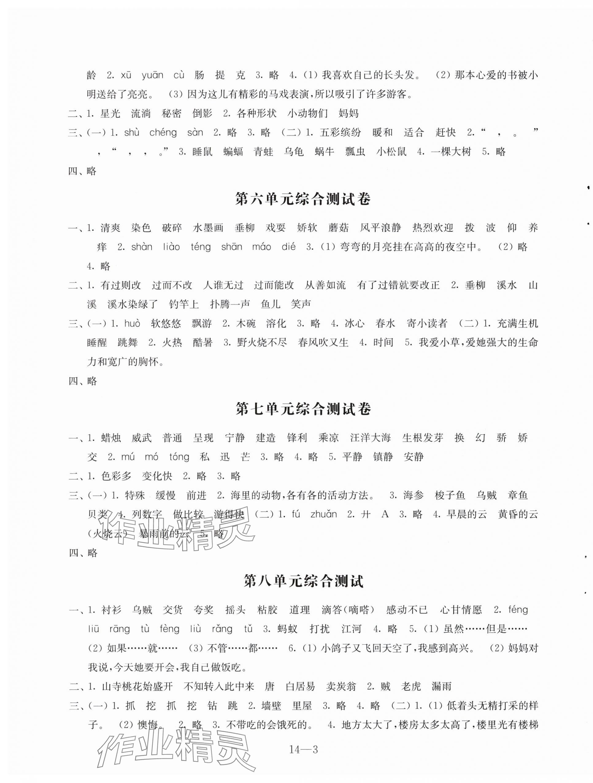 注:目前有些书本章节名称可能整理的还不是很完善,但都是按照顺序排列的,请同学们按照顺序仔细查找。练习册 2024年同步练习配套试卷三年级语文下册人教版 答案主要是用来给同学们做完题方便对答案用的,请勿直接抄袭。