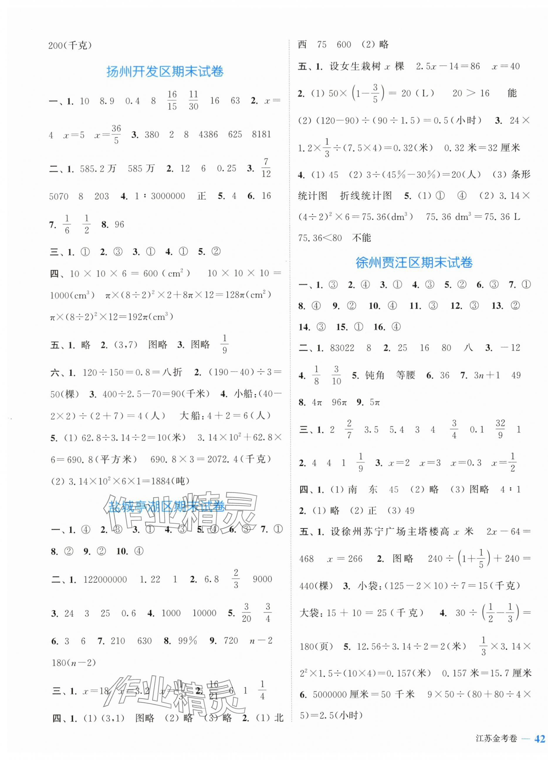 注:目前有些书本章节名称可能整理的还不是很完善,但都是按照顺序排列的,请同学们按照顺序仔细查找。练习册 2024年江苏金考卷六年级数学下册苏教版 答案主要是用来给同学们做完题方便对答案用的,请勿直接抄袭。