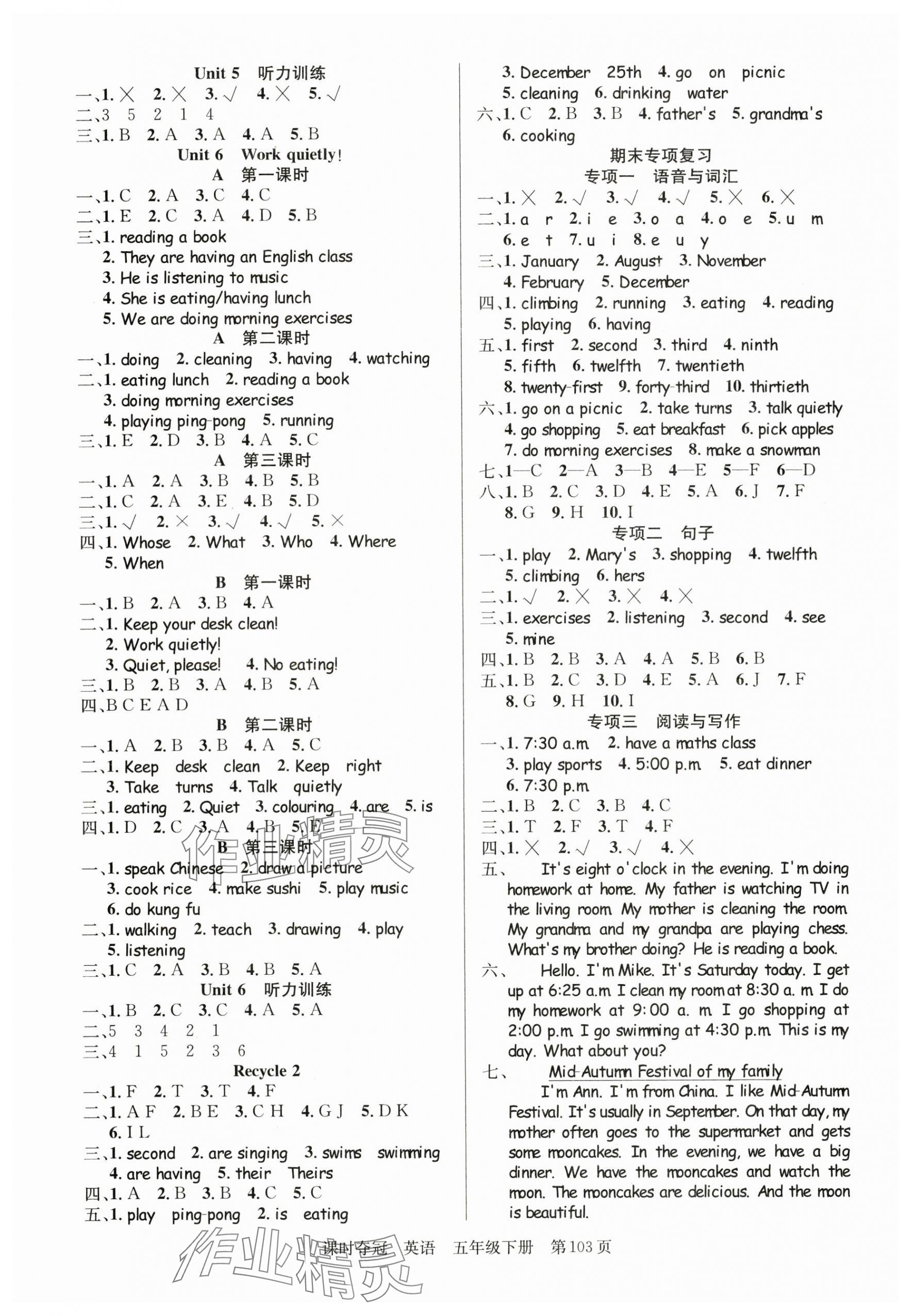 注:目前有些书本章节名称可能整理的还不是很完善,但都是按照顺序排列的,请同学们按照顺序仔细查找。练习册 2024年课时夺冠五年级英语下册人教版 答案主要是用来给同学们做完题方便对答案用的,请勿直接抄袭。