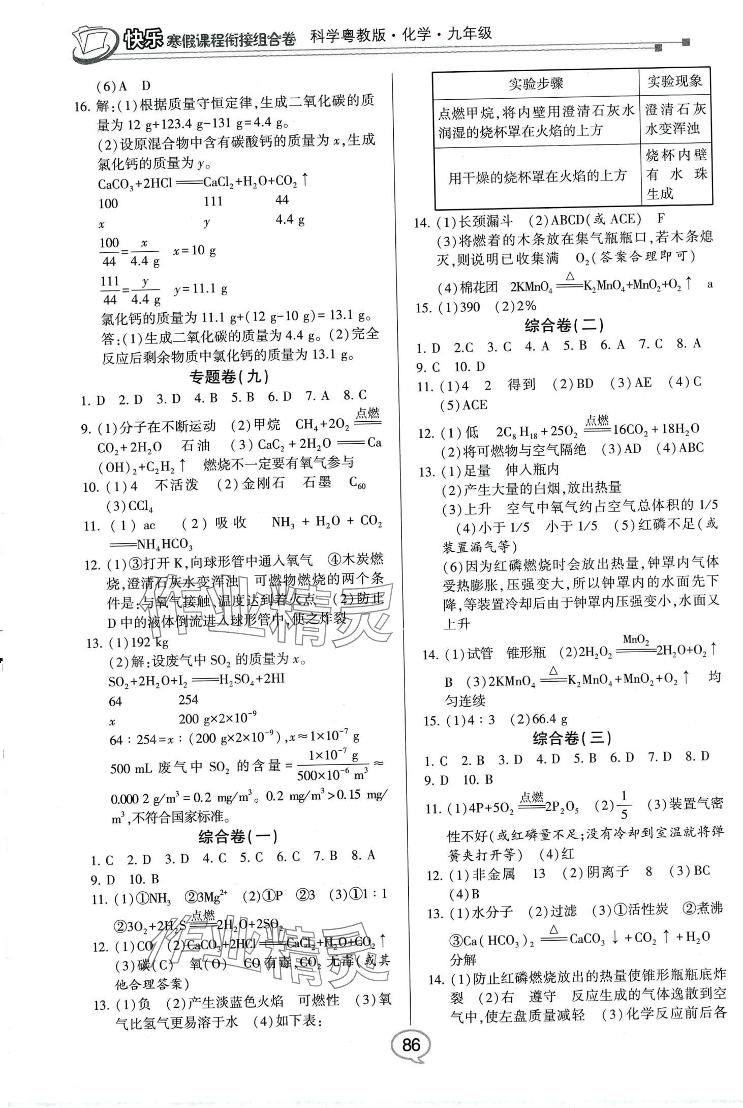 2024年快乐寒假课程衔接组合卷九年级化学科粤版