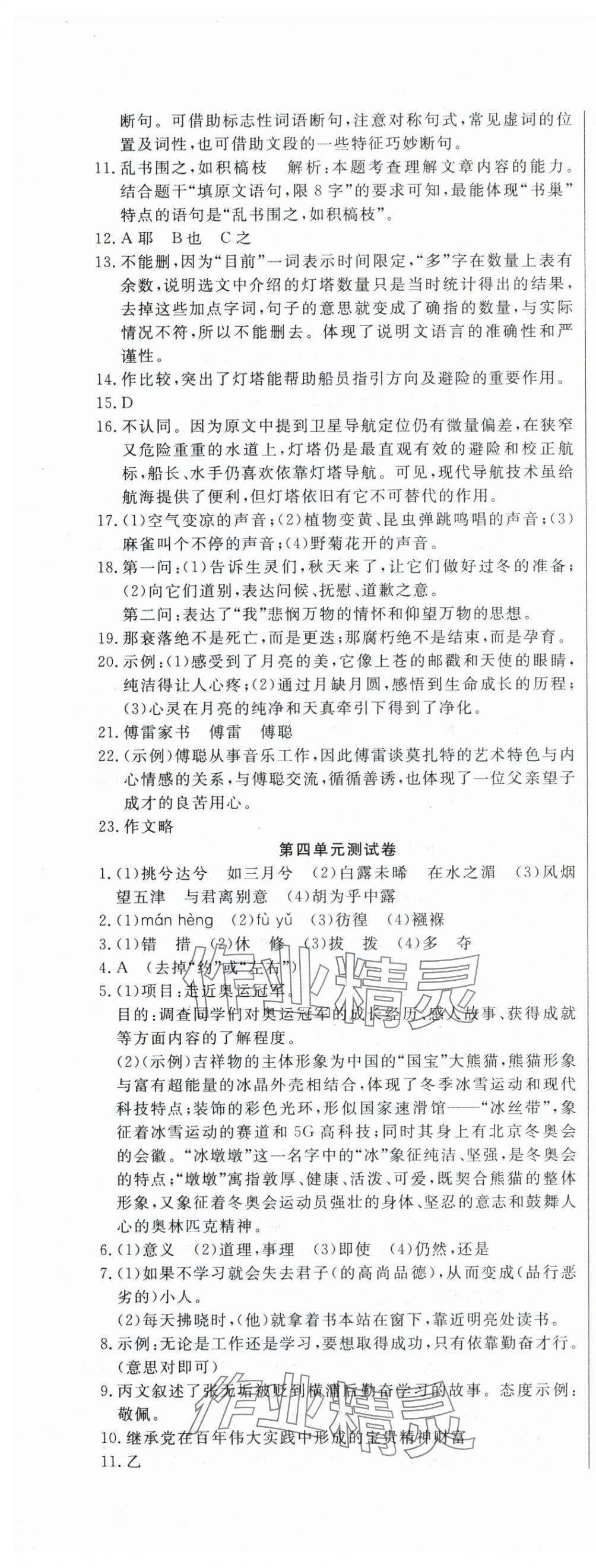 注:目前有些书本章节名称可能整理的还不是很完善,但都是按照顺序排列的,请同学们按照顺序仔细查找。练习册 2024年新思维名师培优卷八年级语文下册人教版 答案主要是用来给同学们做完题方便对答案用的,请勿直接抄袭。