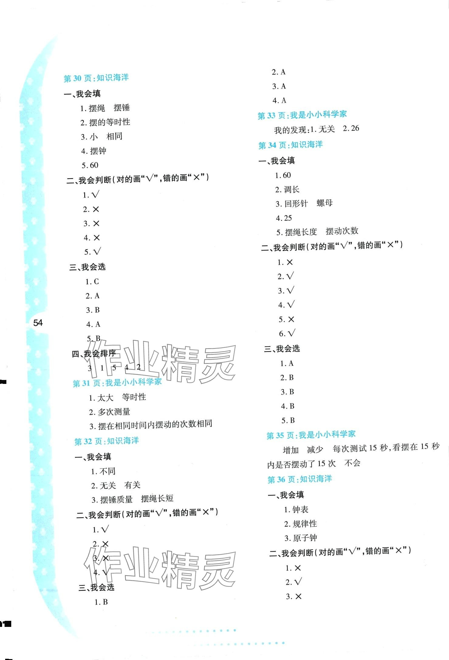 2024年寒假作业与生活陕西人民教育出版社五年级科学