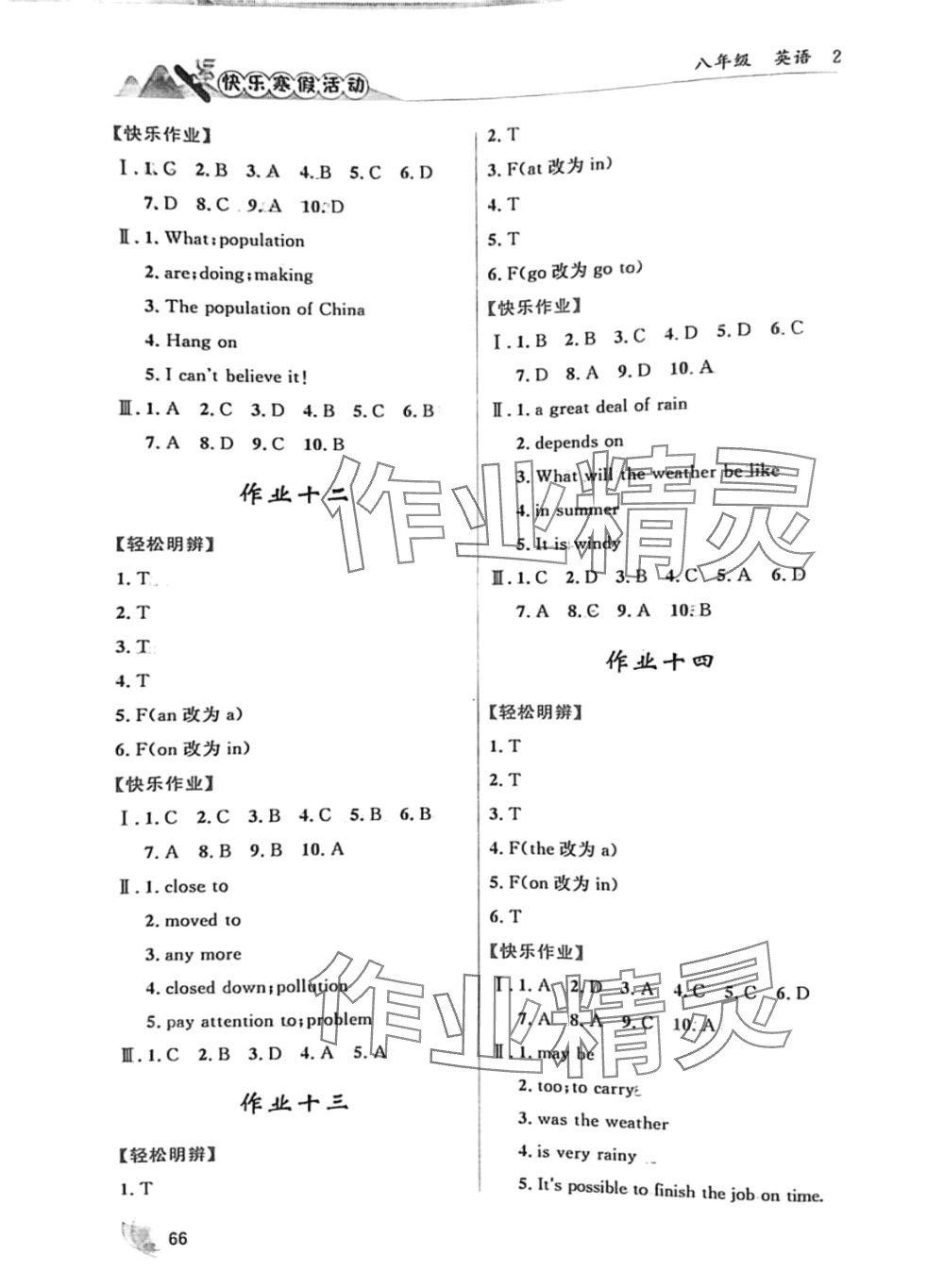 注:目前有些书本章节名称可能整理的还不是很完善,但都是按照顺序排列的,请同学们按照顺序仔细查找。练习册 2024年快乐寒假活动八年级英语 答案主要是用来给同学们做完题方便对答案用的,请勿直接抄袭。