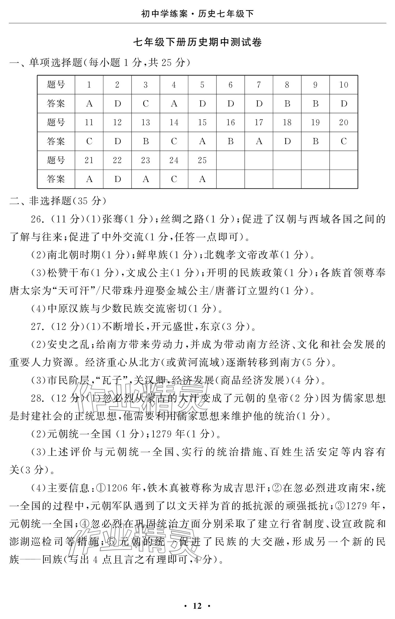 注:目前有些书本章节名称可能整理的还不是很完善,但都是按照顺序排列的,请同学们按照顺序仔细查找。练习册 2024年初中学练案七年级历史下册人教版 答案主要是用来给同学们做完题方便对答案用的,请勿直接抄袭。