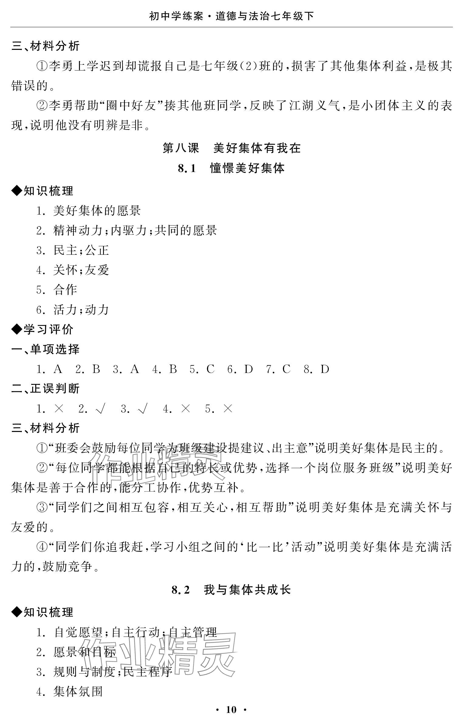 注:目前有些书本章节名称可能整理的还不是很完善,但都是按照顺序排列的,请同学们按照顺序仔细查找。练习册 2024年初中学练案七年级道德与法治下册 答案主要是用来给同学们做完题方便对答案用的,请勿直接抄袭。