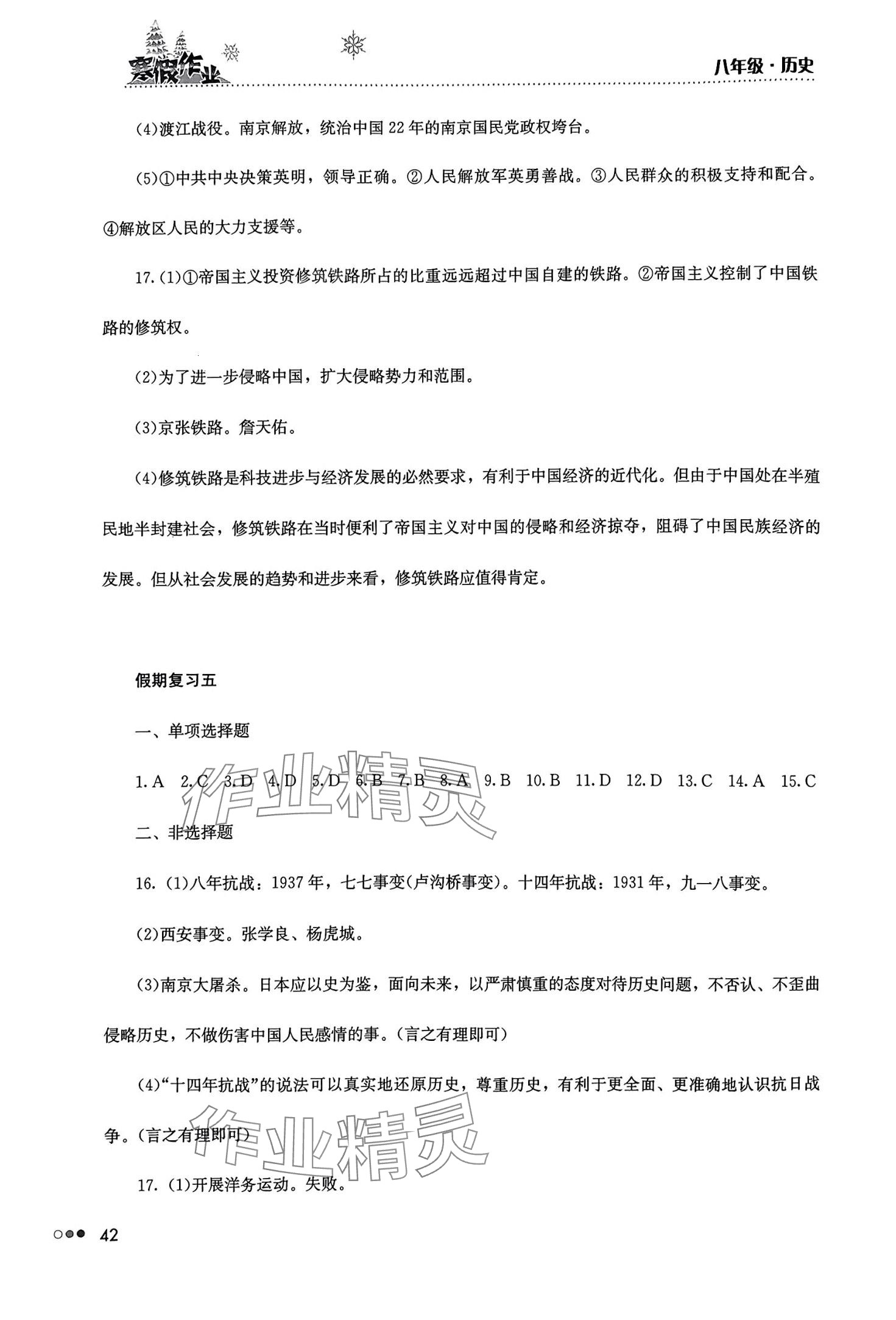2024年寒假作业完美假期生活湖南教育出版社八年级历史