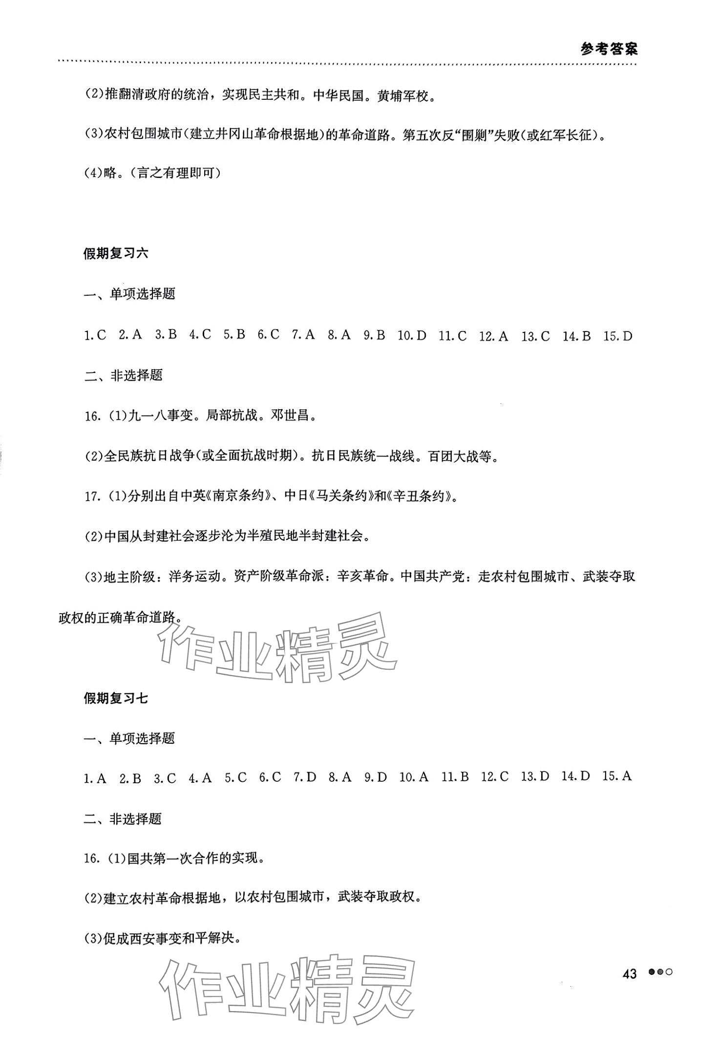 2024年寒假作业完美假期生活湖南教育出版社八年级历史