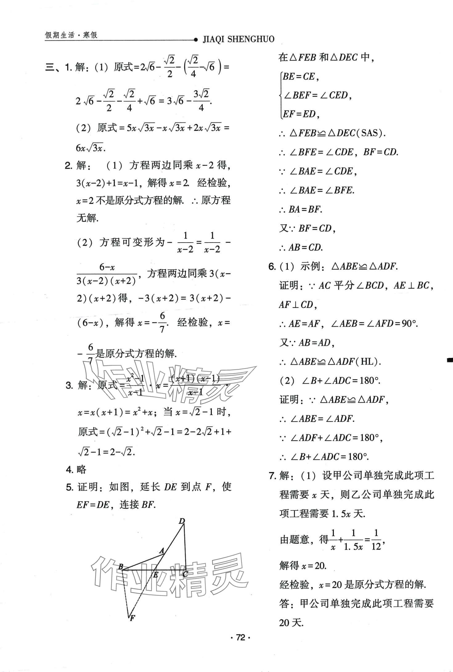 《2024年假期生活方圆电子音像出版社八年级数学冀教版》