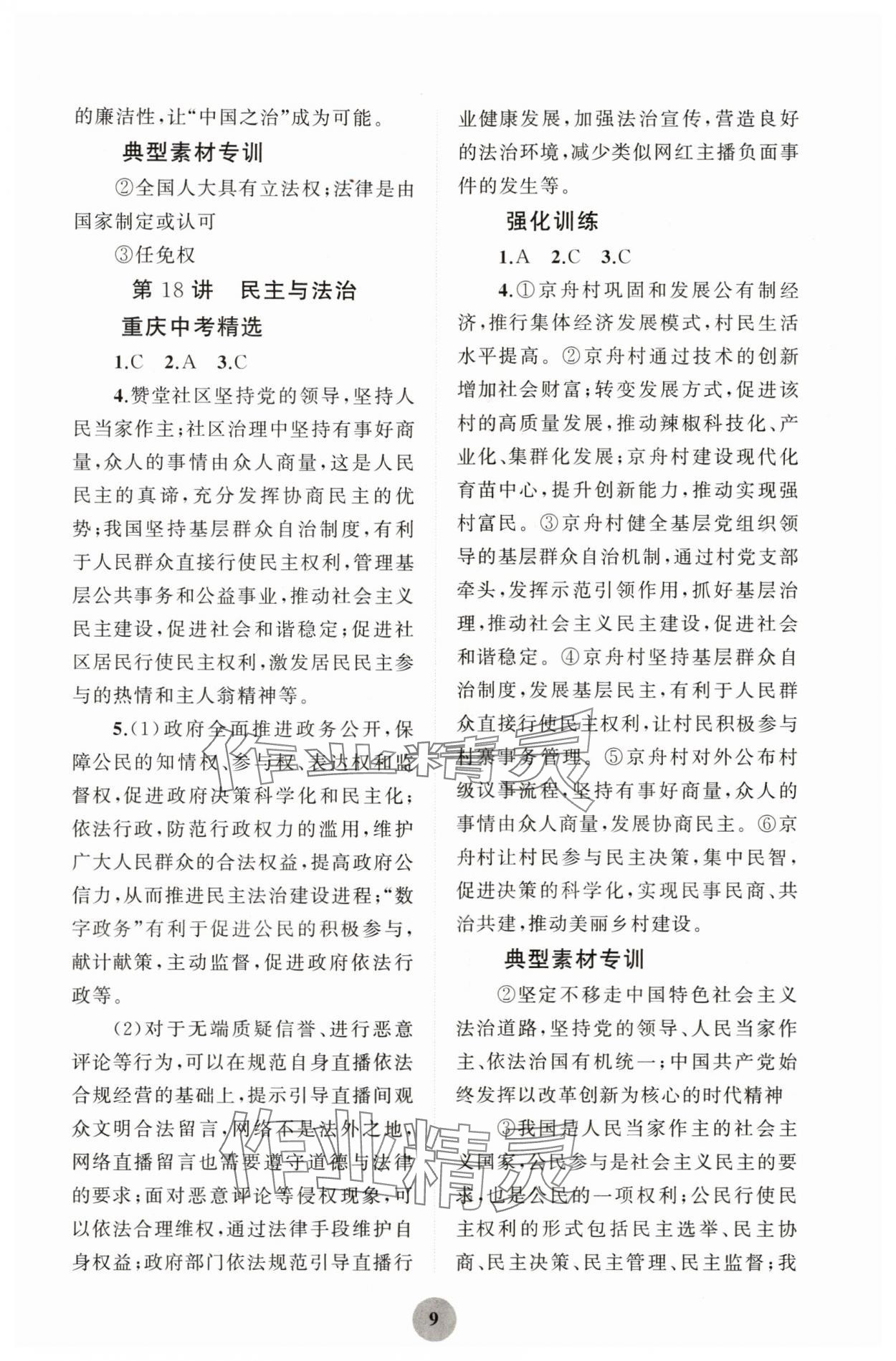 注:目前有些书本章节名称可能整理的还不是很完善,但都是按照顺序排列的,请同学们按照顺序仔细查找。练习册 2024年重庆市中考试题分析与复习指导道德与法治 答案主要是用来给同学们做完题方便对答案用的,请勿直接抄袭。