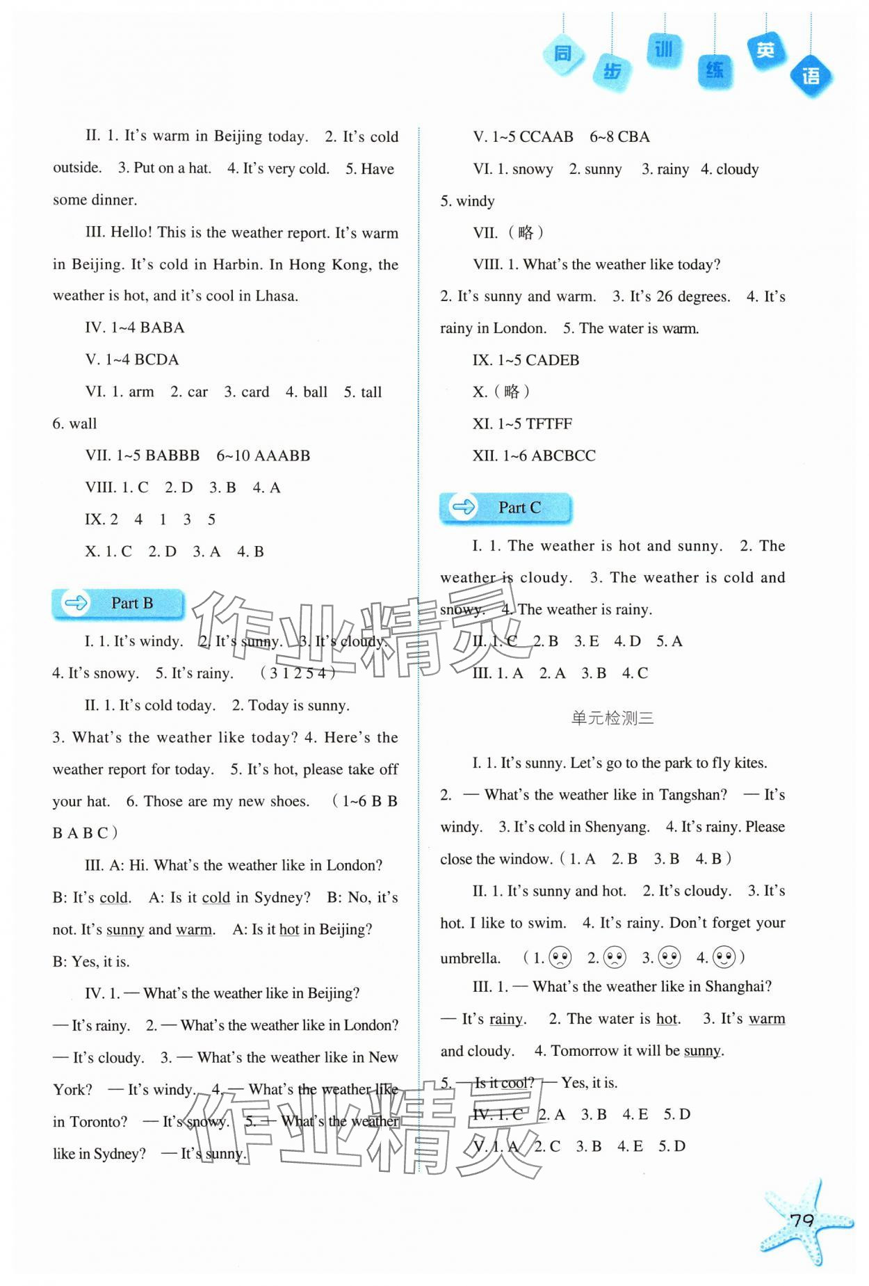 注:目前有些书本章节名称可能整理的还不是很完善,但都是按照顺序排列的,请同学们按照顺序仔细查找。练习册 2024年同步训练河北人民出版社四年级英语下册人教版 答案主要是用来给同学们做完题方便对答案用的,请勿直接抄袭。