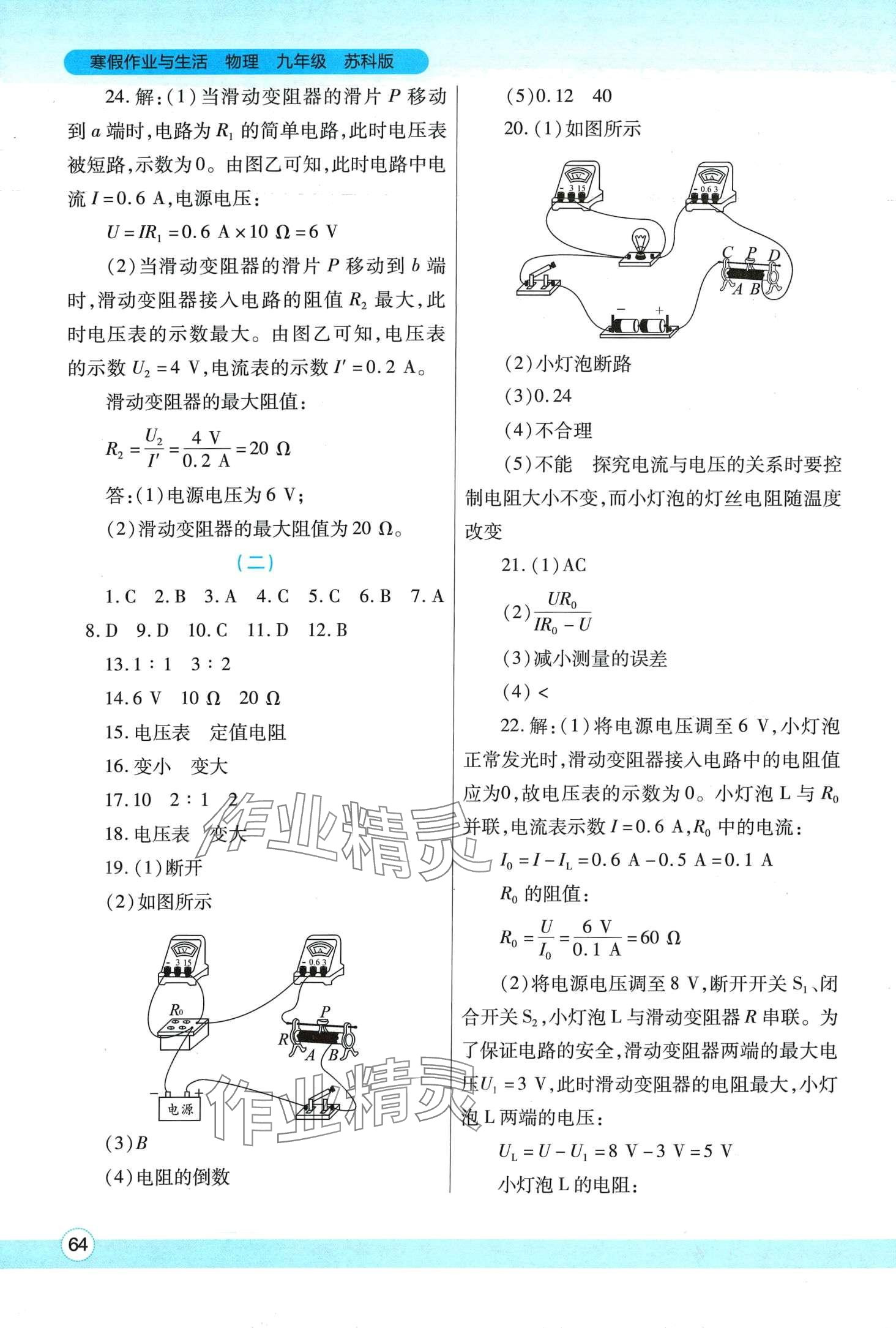 2024年寒假作业与生活陕西师范大学出版总社九年级物理苏科版
