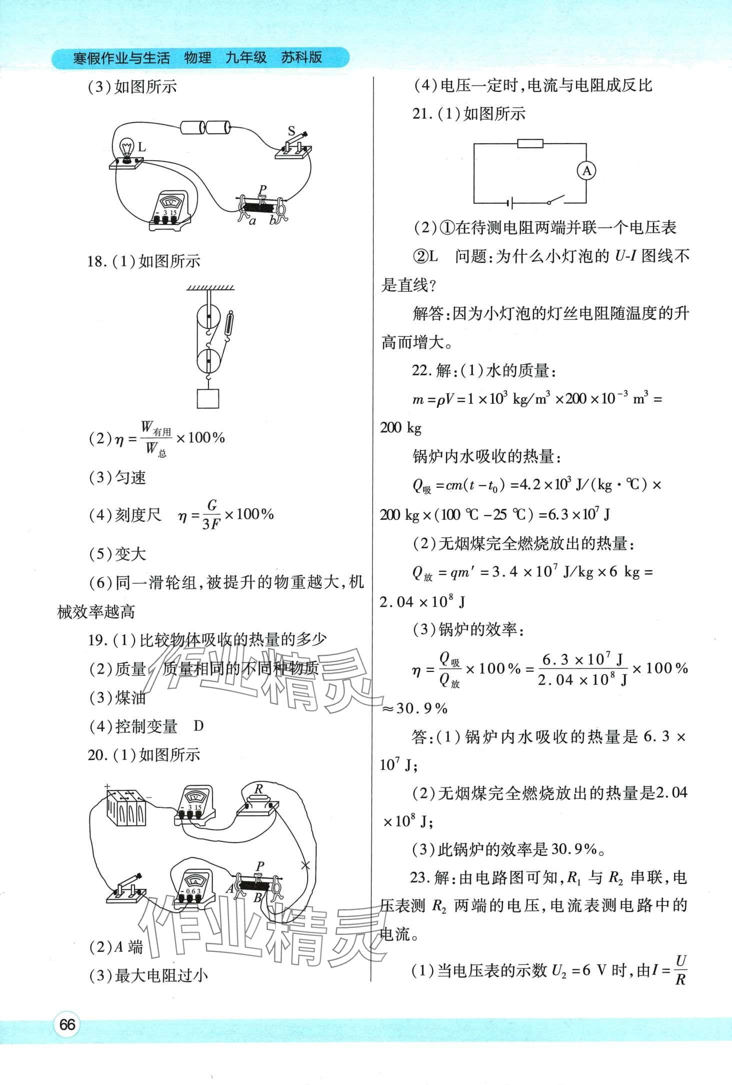 2024年寒假作业与生活陕西师范大学出版总社九年级物理苏科版