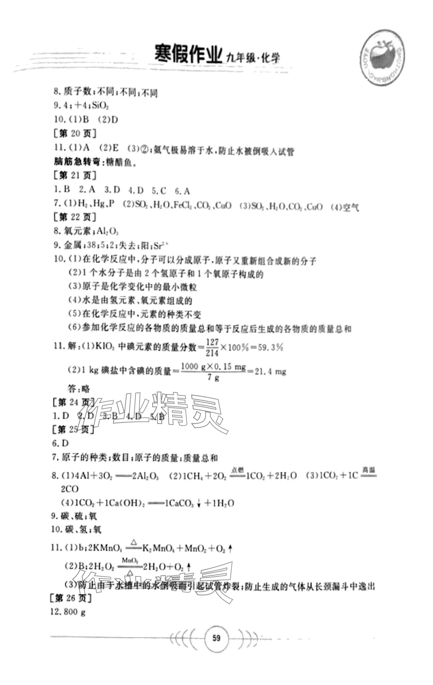 注:目前有些书本章节名称可能整理的还不是很完善,但都是按照顺序排列的,请同学们按照顺序仔细查找。练习册 2024年寒假作业华中科技大学出版社九年级化学 答案主要是用来给同学们做完题方便对答案用的,请勿直接抄袭。