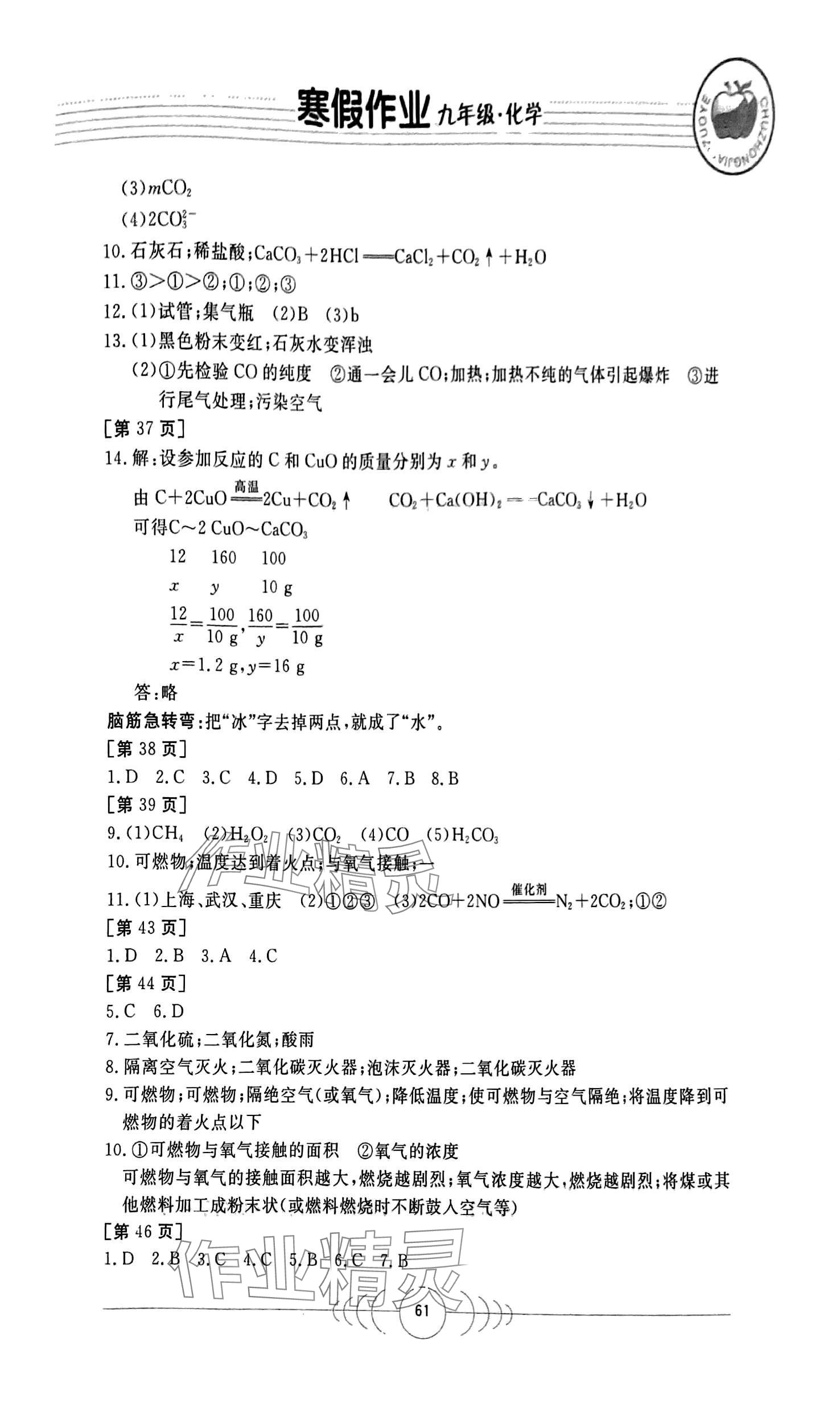 注:目前有些书本章节名称可能整理的还不是很完善,但都是按照顺序排列的,请同学们按照顺序仔细查找。练习册 2024年寒假作业华中科技大学出版社九年级化学 答案主要是用来给同学们做完题方便对答案用的,请勿直接抄袭。