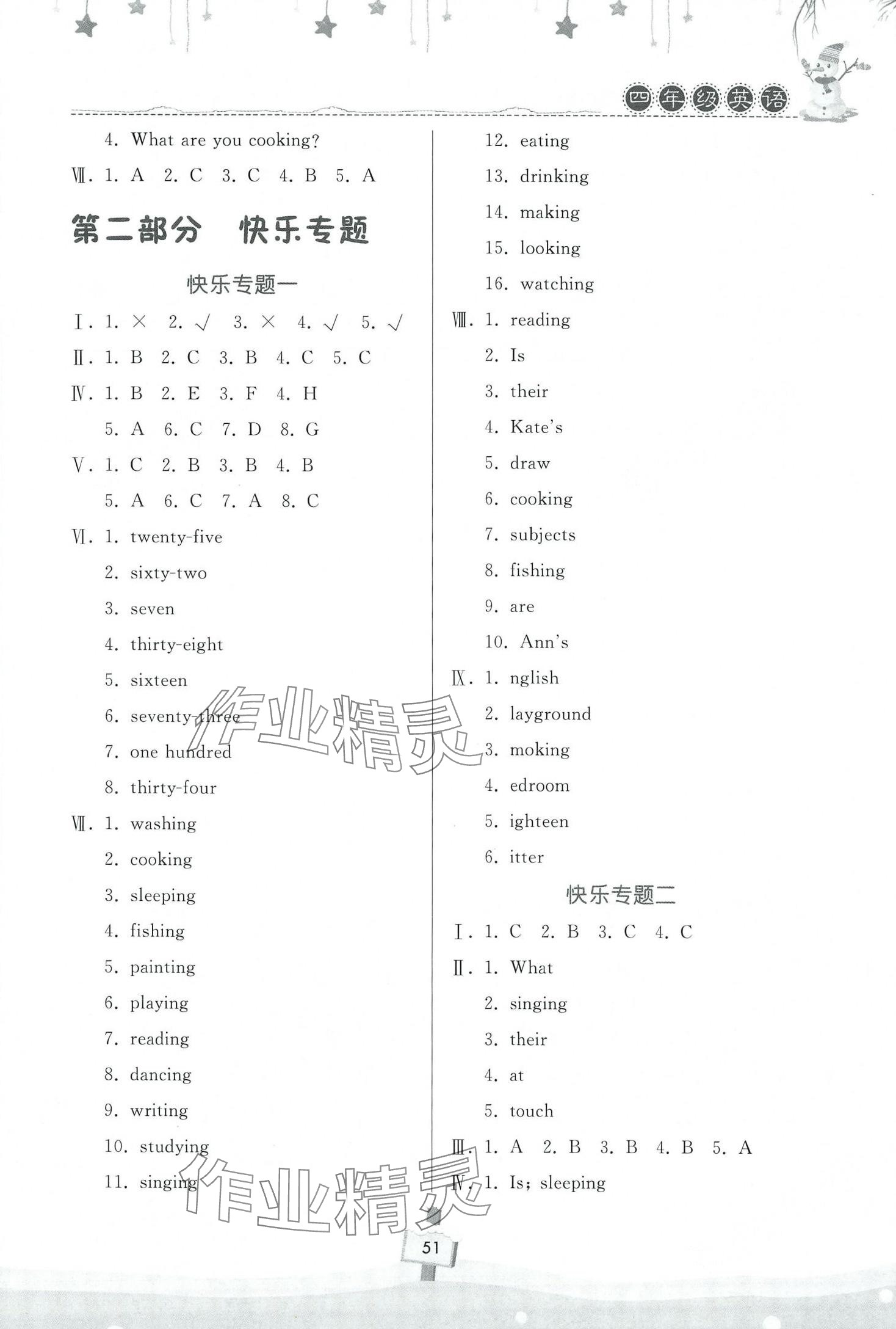 注:目前有些书本章节名称可能整理的还不是很完善,但都是按照顺序排列的,请同学们按照顺序仔细查找。练习册 2024年快乐寒假天天练四年级英语 答案主要是用来给同学们做完题方便对答案用的,请勿直接抄袭。