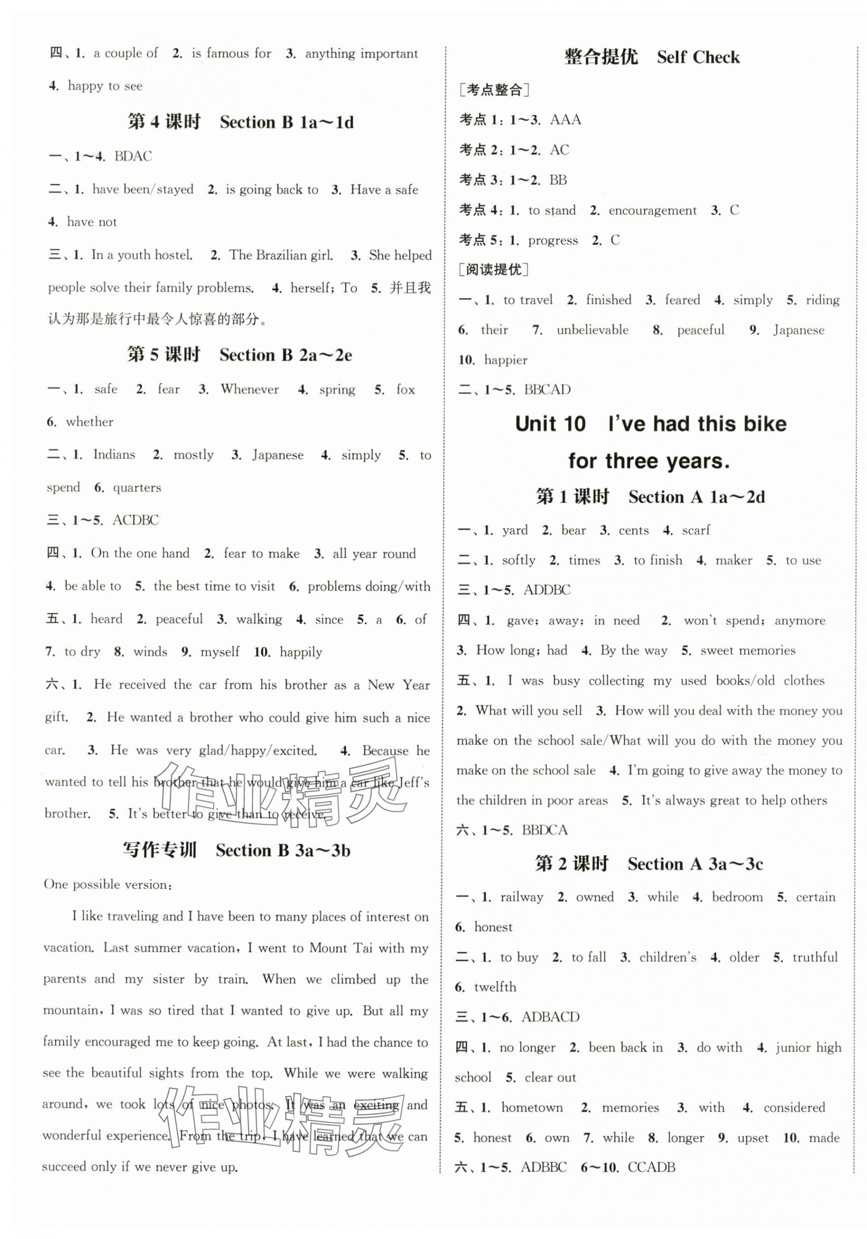 注:目前有些书本章节名称可能整理的还不是很完善,但都是按照顺序排列的,请同学们按照顺序仔细查找。练习册 2024年通城学典课时作业本八年级英语下册人教版 答案主要是用来给同学们做完题方便对答案用的,请勿直接抄袭。