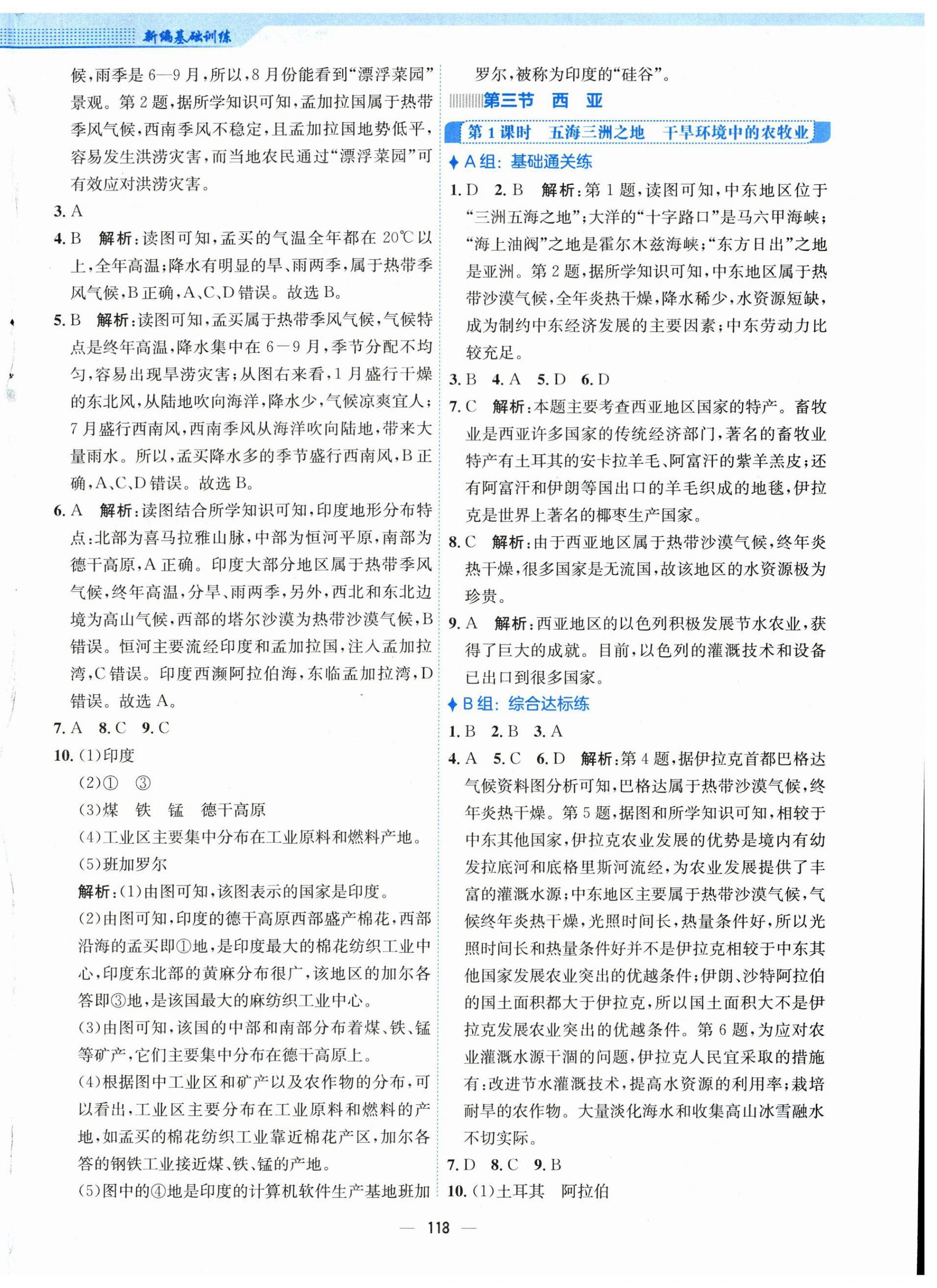 注:目前有些书本章节名称可能整理的还不是很完善,但都是按照顺序排列的,请同学们按照顺序仔细查找。练习册 2024年新编基础训练七年级地理下册湘教版 答案主要是用来给同学们做完题方便对答案用的,请勿直接抄袭。