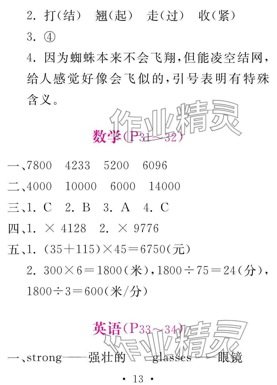 注:目前有些书本章节名称可能整理的还不是很完善,但都是按照顺序排列的,请同学们按照顺序仔细查找。练习册 2024年天舟文化精彩寒假团结出版社四年级 答案主要是用来给同学们做完题方便对答案用的,请勿直接抄袭。