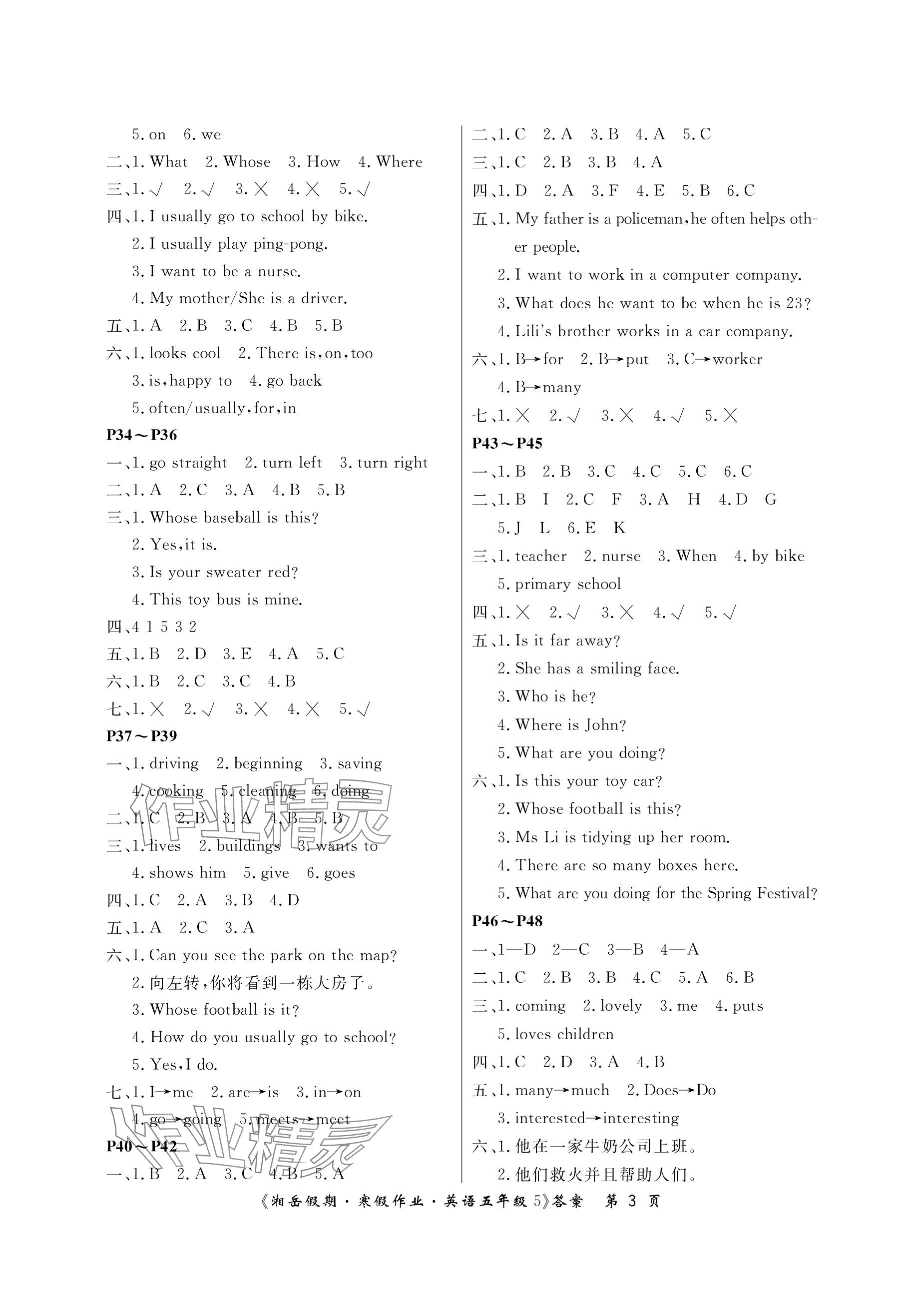 注:目前有些书本章节名称可能整理的还不是很完善,但都是按照顺序排列的,请同学们按照顺序仔细查找。练习册 2024年湘岳假期寒假作业五年级英语湘鲁教版第五版 答案主要是用来给同学们做完题方便对答案用的,请勿直接抄袭。