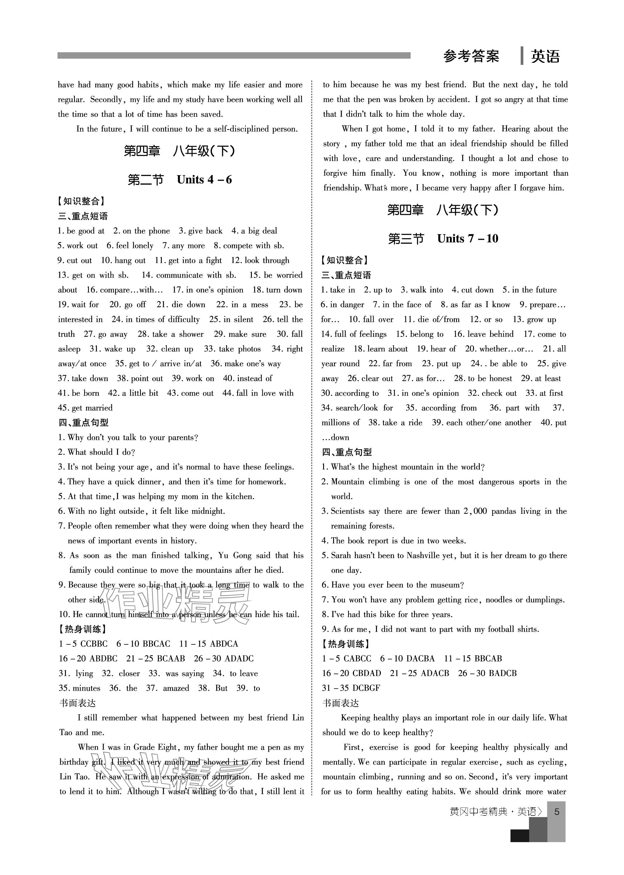 注:目前有些书本章节名称可能整理的还不是很完善,但都是按照顺序排列的,请同学们按照顺序仔细查找。练习册 2024年中考精典九年级英语 答案主要是用来给同学们做完题方便对答案用的,请勿直接抄袭。