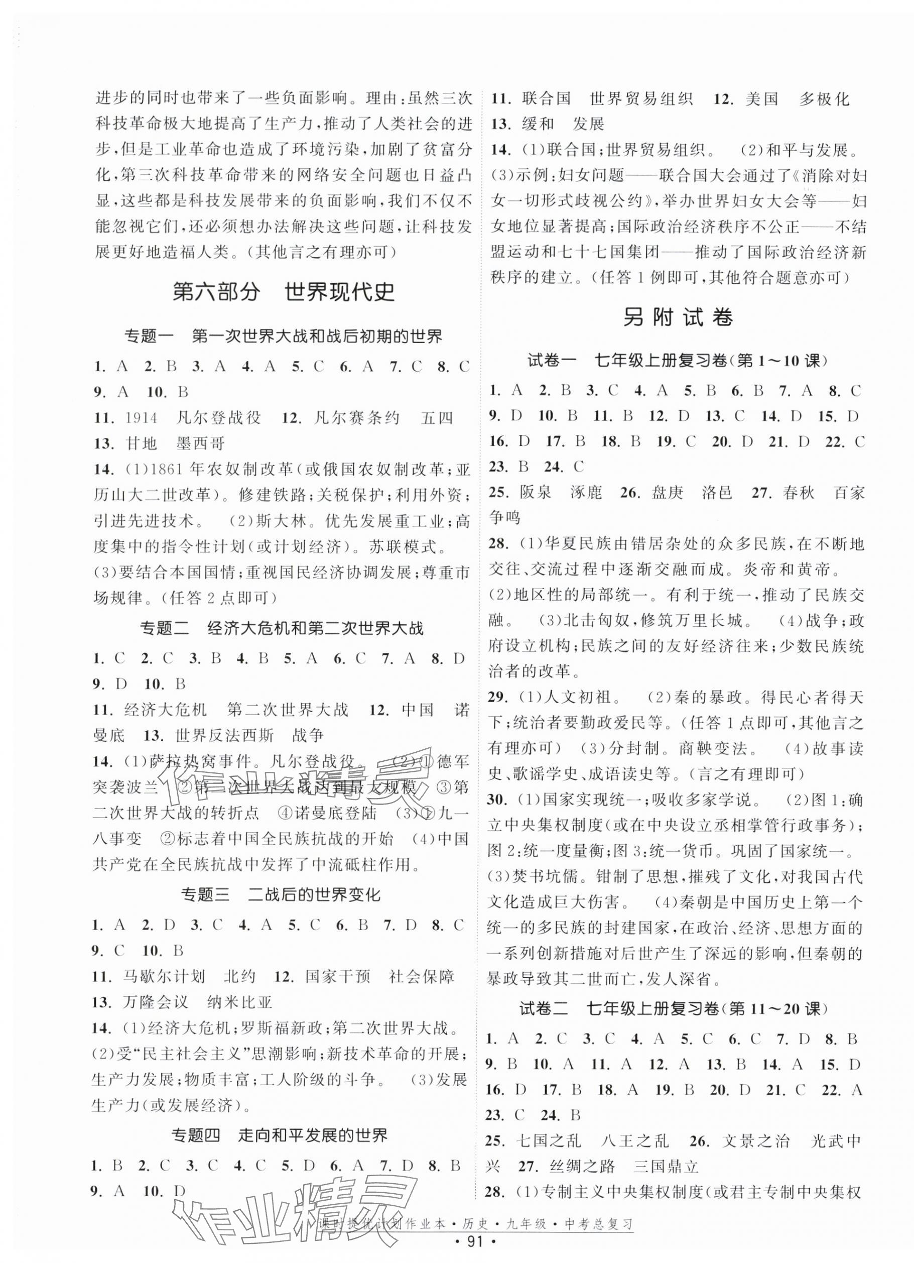 注:目前有些书本章节名称可能整理的还不是很完善,但都是按照顺序排列的,请同学们按照顺序仔细查找。练习册 2024年课时提优计划作业本九年级中考总复习历史 答案主要是用来给同学们做完题方便对答案用的,请勿直接抄袭。