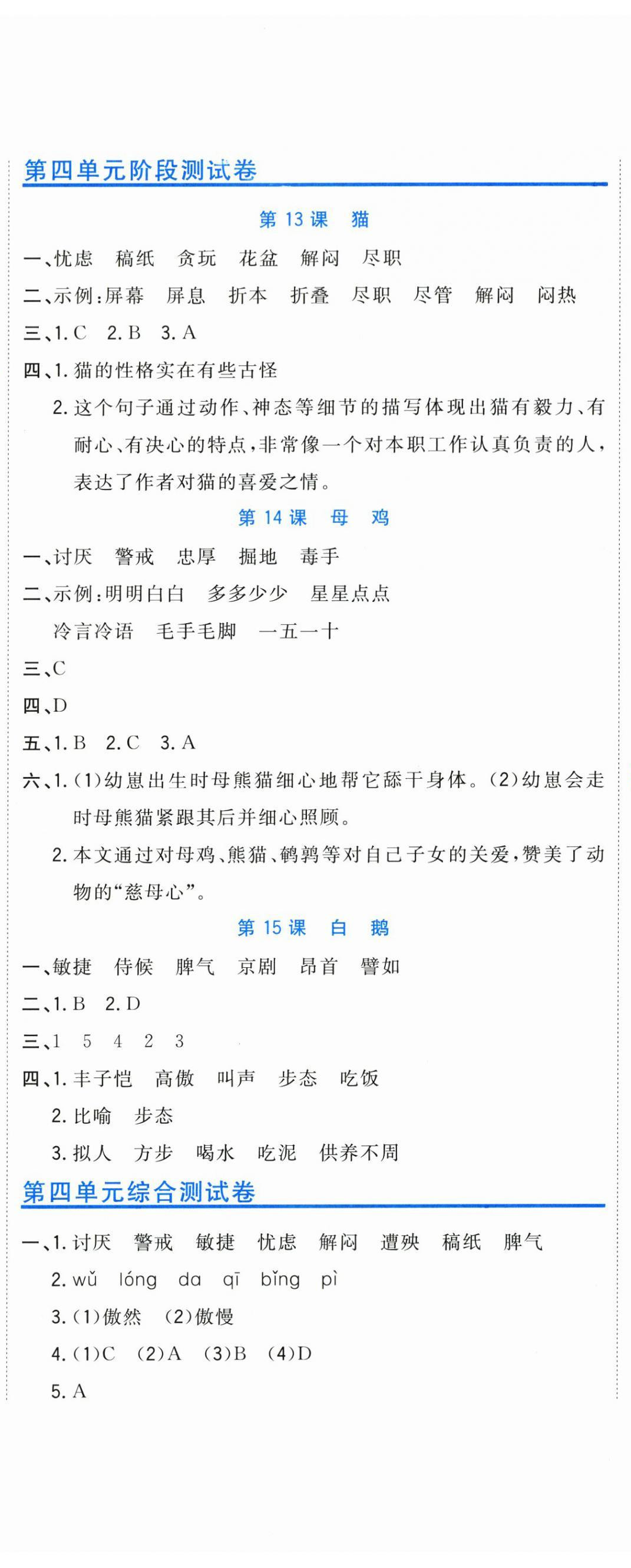 注:目前有些书本章节名称可能整理的还不是很完善,但都是按照顺序排列的,请同学们按照顺序仔细查找。练习册 2024年新目标检测同步单元测试卷四年级语文下册人教版 答案主要是用来给同学们做完题方便对答案用的,请勿直接抄袭。